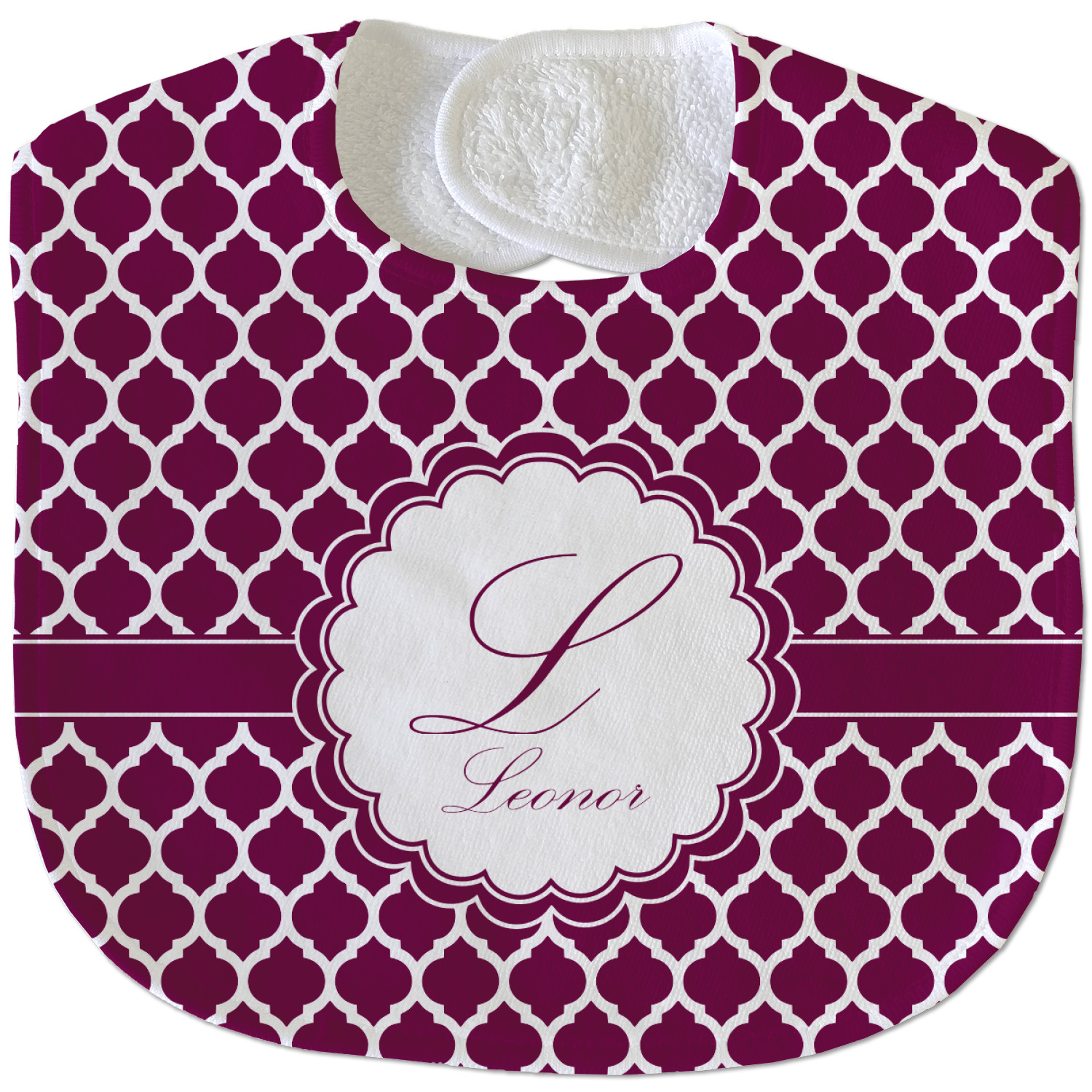 Made of soft polyester, each customizable bib hugs comfortably around the neck to catch every drip and drool. Each bib design is printed with baby-safe ink and finished with a secure stitch pattern and velcro clasp. We carry two customizable bib styles -Microfiber Velour and Jersey Knit.