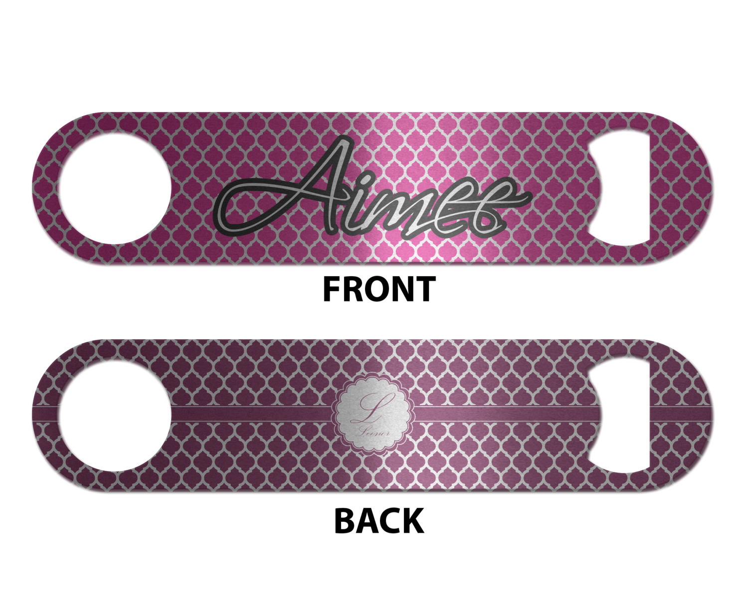 Stop struggling with the caps or your bottled beverages by purchasing one of our personalized bottle openers! These wrench-like custom bar blades are built to last. Customize one for your home's bar, or as a practical gift for a loved one!