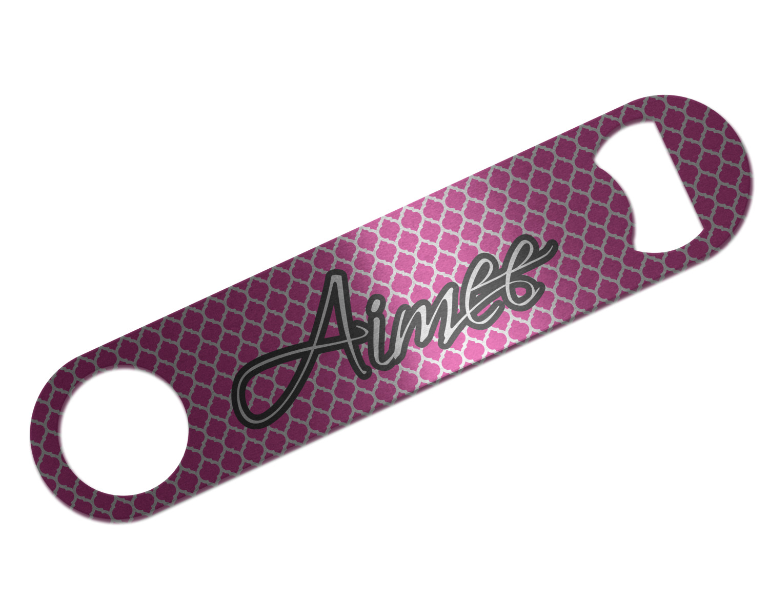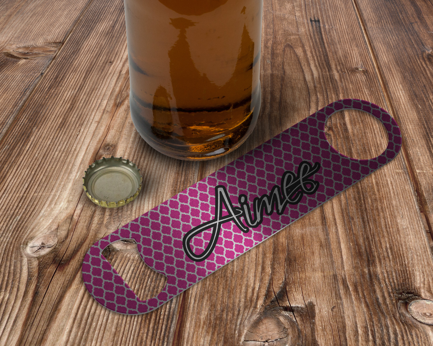 Stop struggling with the caps or your bottled beverages by purchasing one of our personalized bottle openers! These wrench-like custom bar blades are built to last. Customize one for your home's bar, or as a practical gift for a loved one!