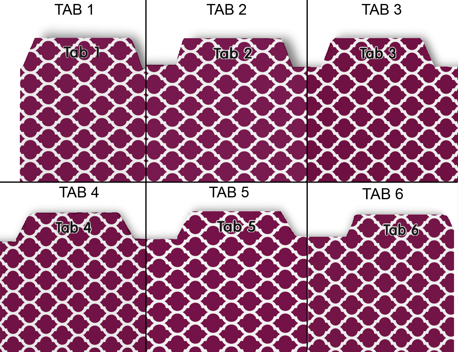 Whether you use binders at school or at work, we have designs to suit all of them. Available in 5 or 6 tab sets, you are sure to find a set to suit your needs. The back of each one is white and can be used to take notes, write vital information on, etc.