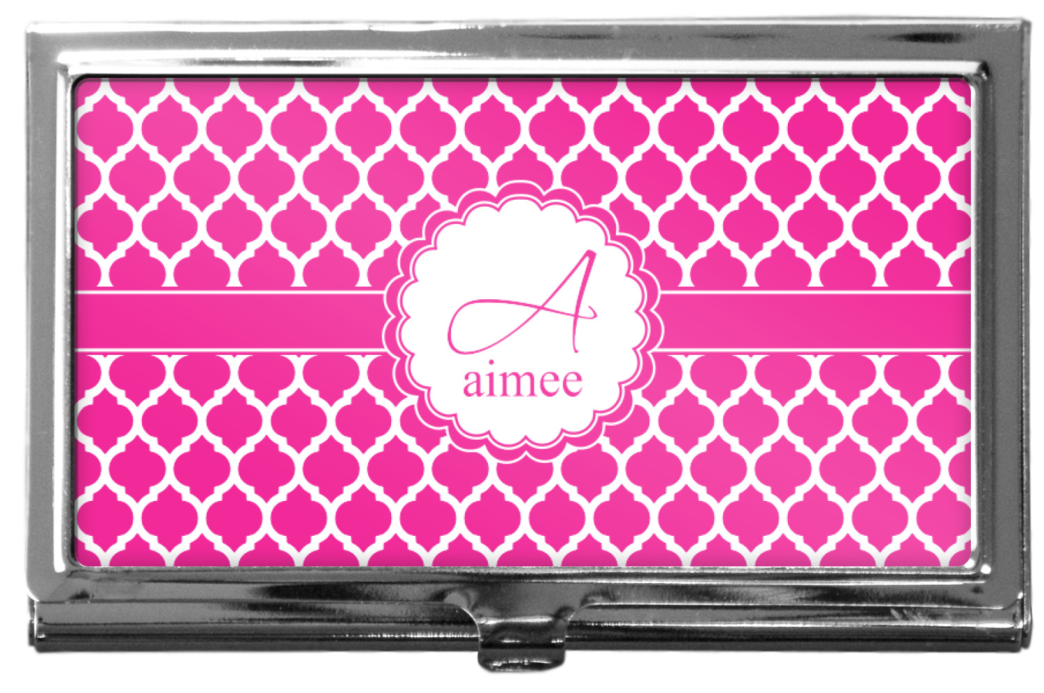 Our personalized business card holders are built from a robust, stainless steel and shaped into a sleek rectangle. At 3.75" x 2.5", and 0.25" thick, this nifty accessory holds up to 12 to 15 business cards, depending on the thickness of the cards themselves. Regardless, the skinny style makes it the perfect fit for your purse or pocket. The lid of your custom business card holder features a protruding tab to open and close your holder with a snap. To protect the mint condition of your cards, the interior of this metal business card holder is lined with a soft, felt fabric. We print your personalized design across the face of the lid.