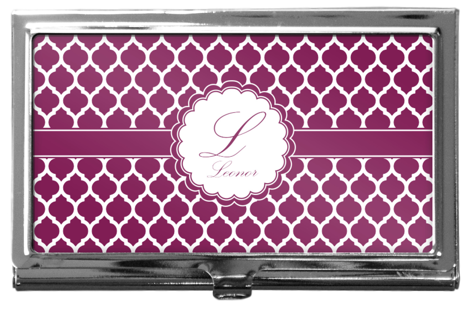 Our personalized business card holders are built from a robust, stainless steel and shaped into a sleek rectangle. At 3.75" x 2.5", and 0.25" thick, this nifty accessory holds up to 12 to 15 business cards, depending on the thickness of the cards themselves. Regardless, the skinny style makes it the perfect fit for your purse or pocket. The lid of your custom business card holder features a protruding tab to open and close your holder with a snap. To protect the mint condition of your cards, the interior of this metal business card holder is lined with a soft, felt fabric. We print your personalized design across the face of the lid.