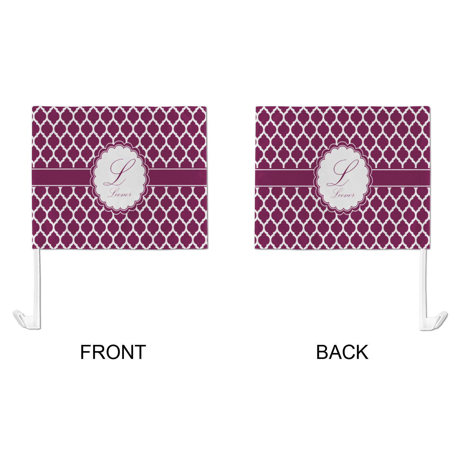 Our personalized flags are made from a durable, yet lightweight cloth that will proudly bear your logo or design of choice, while withstanding the outside elements. We have two size options - 8" x 11" and 11" x 15". Both come with a flag pole which includes a clip that secures the pole to the side window, whether it is rolled up or down. The flags are printed on both sides to display your design from all directions.