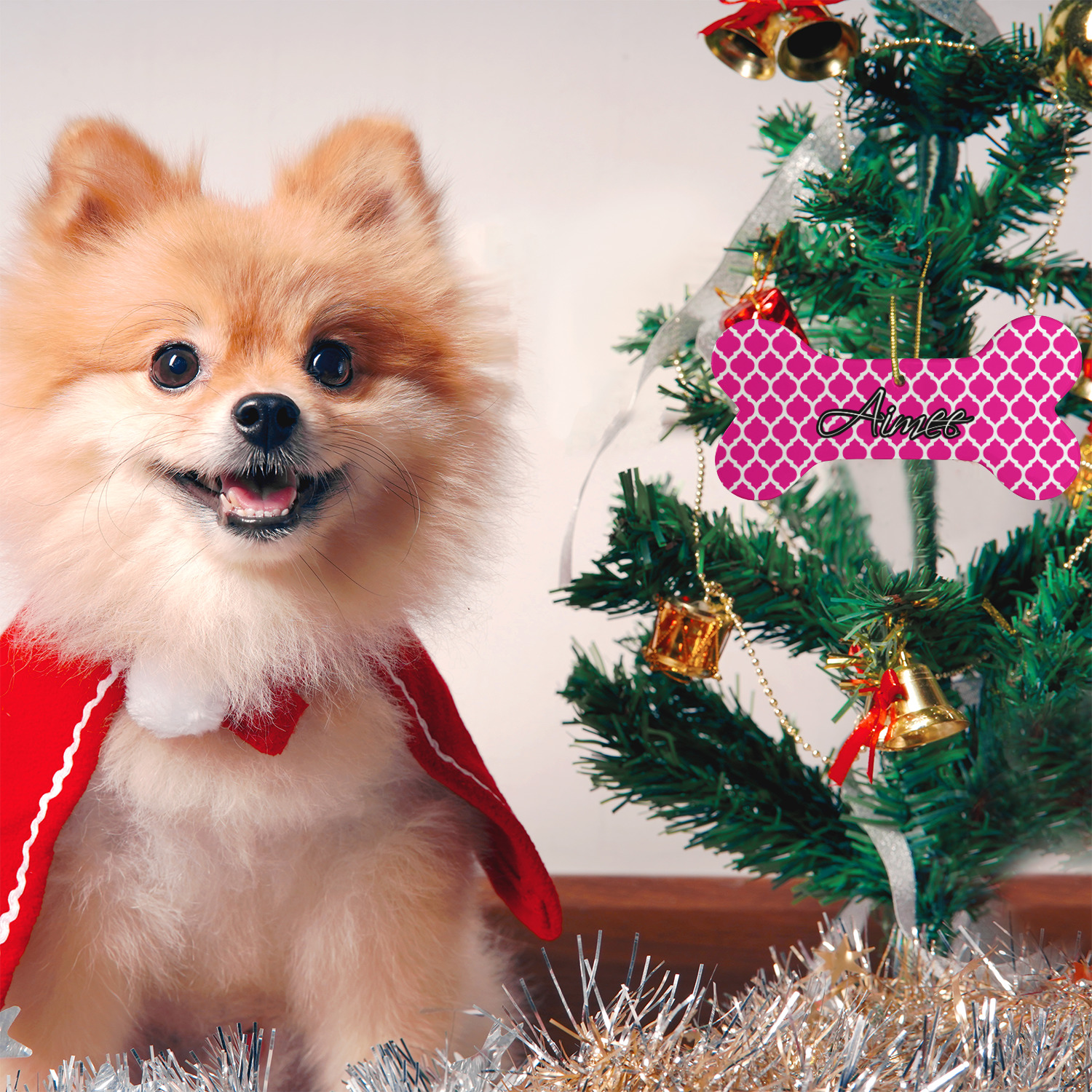 Pets are part of the family, too! Show off your puppy love by creating a personalized ornament for them this Christmas! You'll have their tails wagging hanging up their own custom dog bone ornament! Our customizable ornaments are more than just decorations for the holidays. Use the dog ornament as a nameplate, unique photo frame, or more! Start personalizing your dog ornament today with our online design studio. We offer customizable designs, or you can upload a photo for us to print!