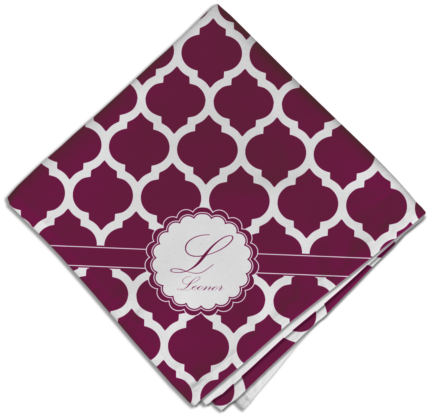 Each customizable cloth napkin is a polyester material guaranteed for long-term use. Since our napkins are cloth, it serves as a great reusable and eco-friendly dining decor. We sell personalized napkins individually or as a set of 4! Print your own unique design on all four napkins, or create four individual designs for each napkin! We offer two different napkin sizes - Cocktail napkins (approx. 10 x 10) and Dinner napkins (approx. 20 x 20). We print your design on one side, perfect for displaying your custom designed lunch napkins in any fold or table setting!