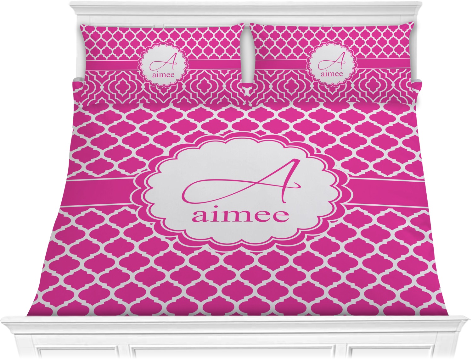 We have hundreds of different design templates for you to choose from Each design can be customized to your exact specifications. Not only can you customize the comforter, but you can also customize each pillow sham e.g. for a queen comforter set you have have Mr & Mrs pillow shams with the last name on comforter.