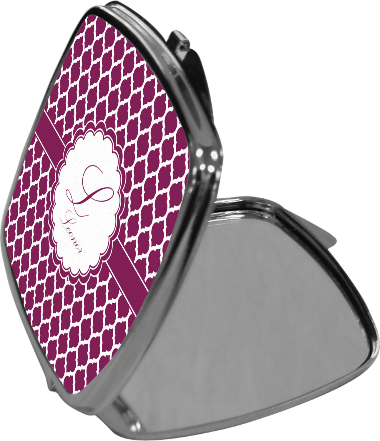 We offer many prints and patterns and many of our patterns are available in 45 different colors. You can personalized the compact mirrors with a name, a monogram or just an initial. We offer several different label, ribbon and font choices. Our customization system lets you create your very own custom & unique product and it lets you preview it before you purchase.