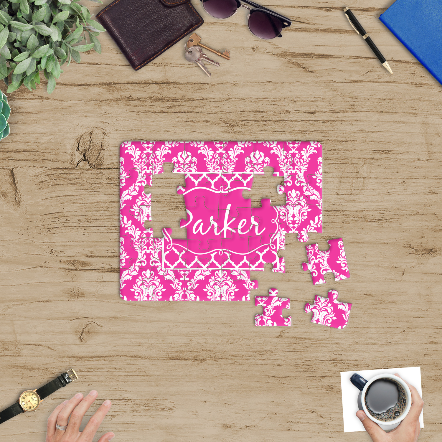 You can also upload your logo or art that you or your kids drew. To create more challenging jigsaw puzzles, you can create a pattern from with your logo or artwork. You can also add other elements such as text or personalization.