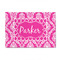 This is one of our new concentric design style - where you can use any two patterns together - we have chose to feature our damask and moroccan / trellis patterns. We chose our hot pink and white for our colors and curlz label with a name for personalization.