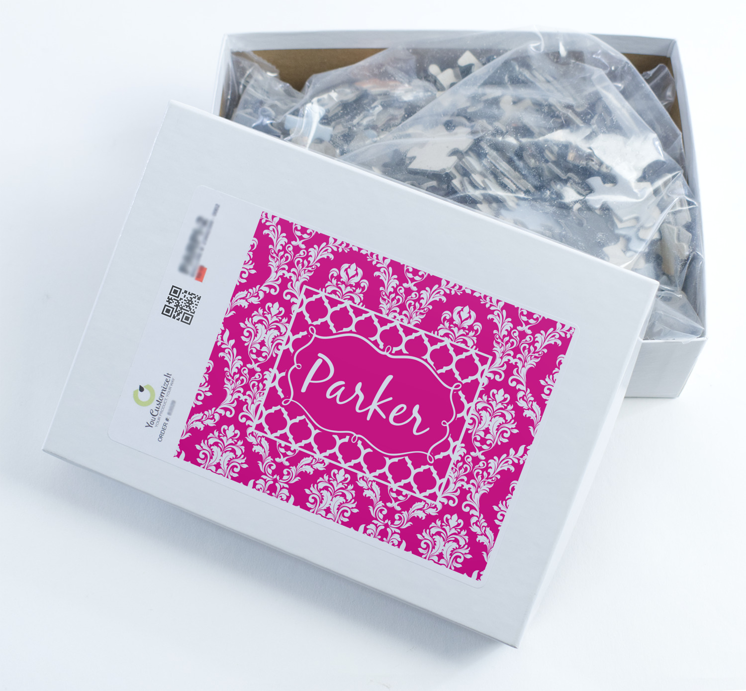 You can also upload your logo or art that you or your kids drew. To create more challenging jigsaw puzzles, you can create a pattern from with your logo or artwork. You can also add other elements such as text or personalization.
