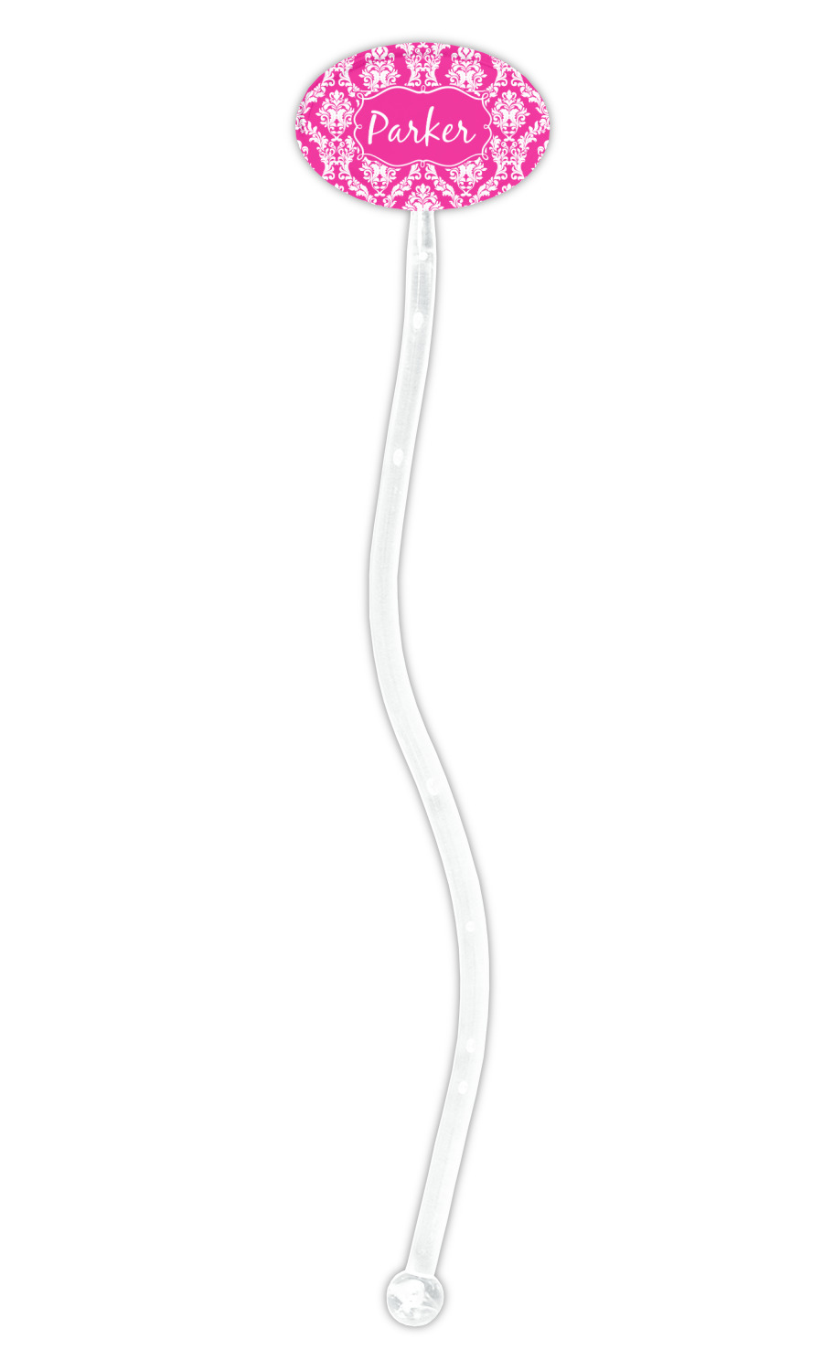 This is one of our new concentric design style - where you can use any two patterns together - we have chose to feature our damask and moroccan / trellis patterns. We chose our hot pink and white for our colors and curlz label with a name for personalization.
