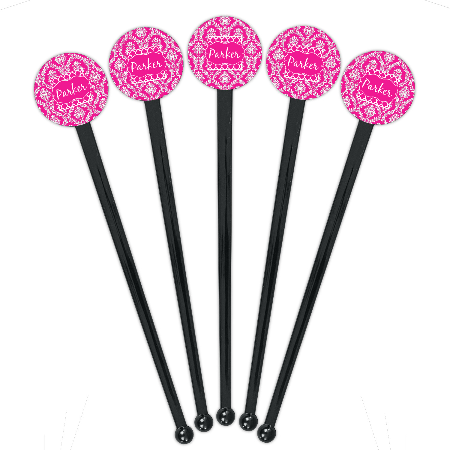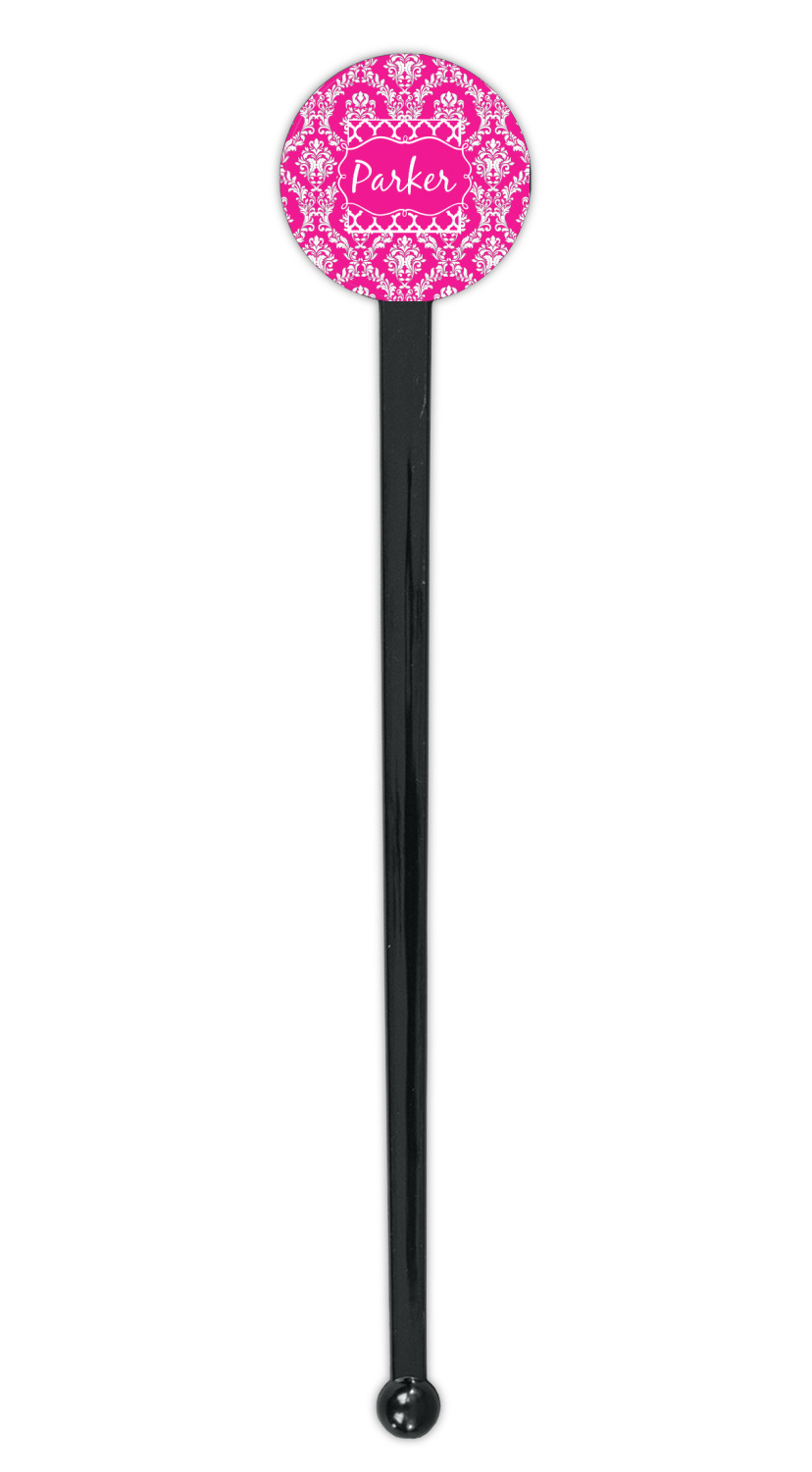 This is one of our new concentric design style - where you can use any two patterns together - we have chose to feature our damask and moroccan / trellis patterns. We chose our hot pink and white for our colors and curlz label with a name for personalization.