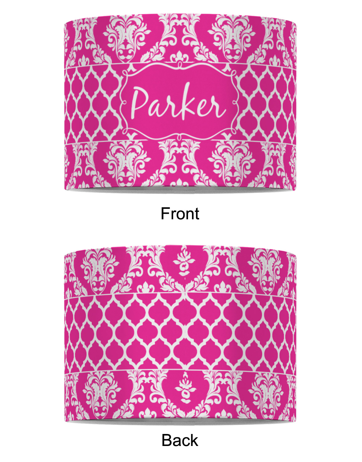 This is one of our new concentric design style - where you can use any two patterns together - we have chose to feature our damask and moroccan / trellis patterns. We chose our hot pink and white for our colors and curlz label with a name for personalization.