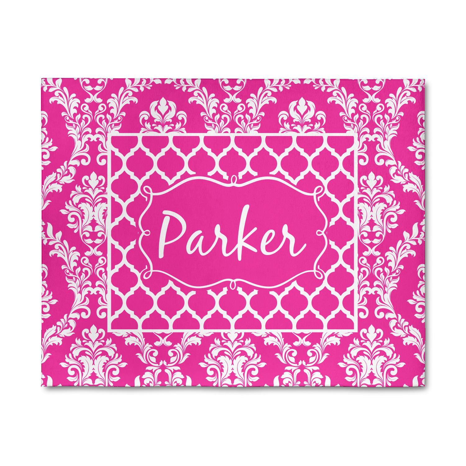 This is one of our new concentric design style - where you can use any two patterns together - we have chose to feature our damask and moroccan / trellis patterns. We chose our hot pink and white for our colors and curlz label with a name for personalization.