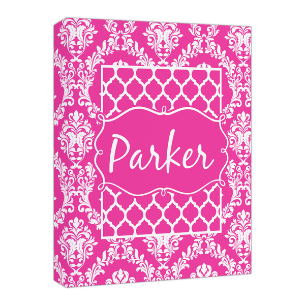 This is one of our new concentric design style - where you can use any two patterns together - we have chose to feature our damask and moroccan / trellis patterns. We chose our hot pink and white for our colors and curlz label with a name for personalization.