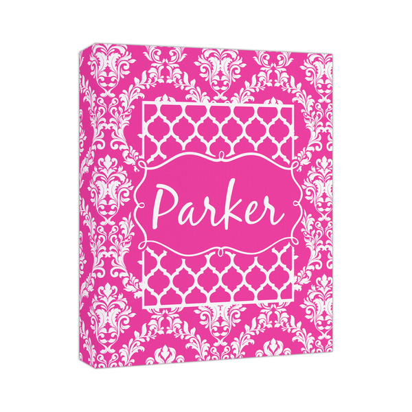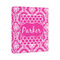 This is one of our new concentric design style - where you can use any two patterns together - we have chose to feature our damask and moroccan / trellis patterns. We chose our hot pink and white for our colors and curlz label with a name for personalization.