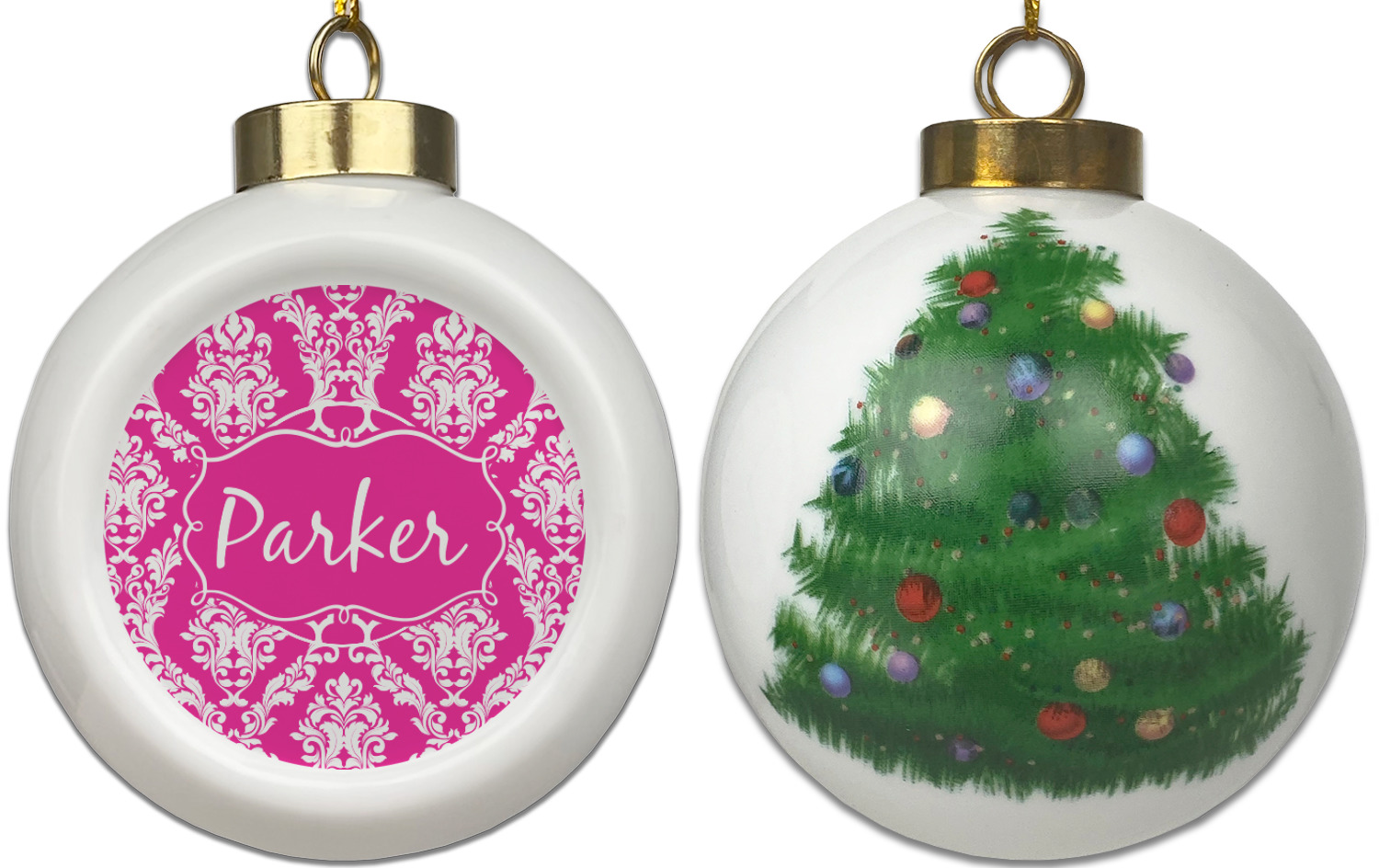 Our Christmas ornaments are a unique ceramic ball shape with a twist as it has a flat face to display your custom design! Select from one of our two design types - Christmas Tree or Poinsettia Garland - to adorn the curved back of your personal design. Each ornament measures 3H x 2.5W x 2D accompanied with a gold string accent for finishing touches to hang on your beautiful Christmas tree!