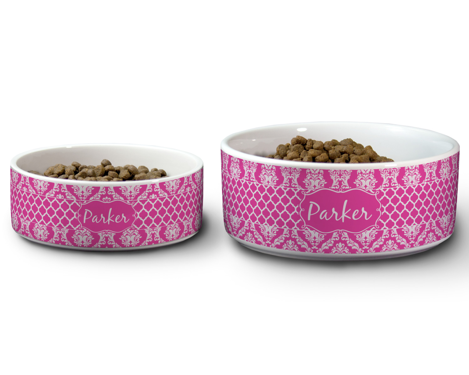 Our customized, ceramic dog bowls allow you to fashion a durable, yet expressive gift for your pet. These bowls are fashionably versatile; they suit both cats and dogs and can hold either food or water. Add your pet's name or favorite color to the design, and spruce up his/her eating area with one or two personalized pet bowls!