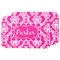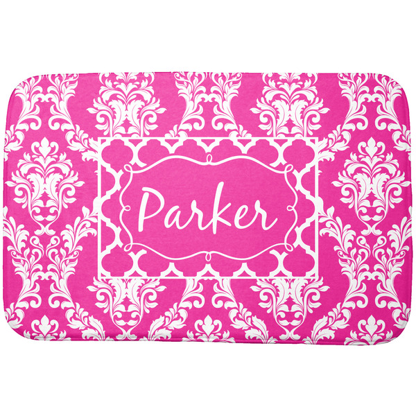 This is one of our new concentric design style - where you can use any two patterns together - we have chose to feature our damask and moroccan / trellis patterns. We chose our hot pink and white for our colors and curlz label with a name for personalization.