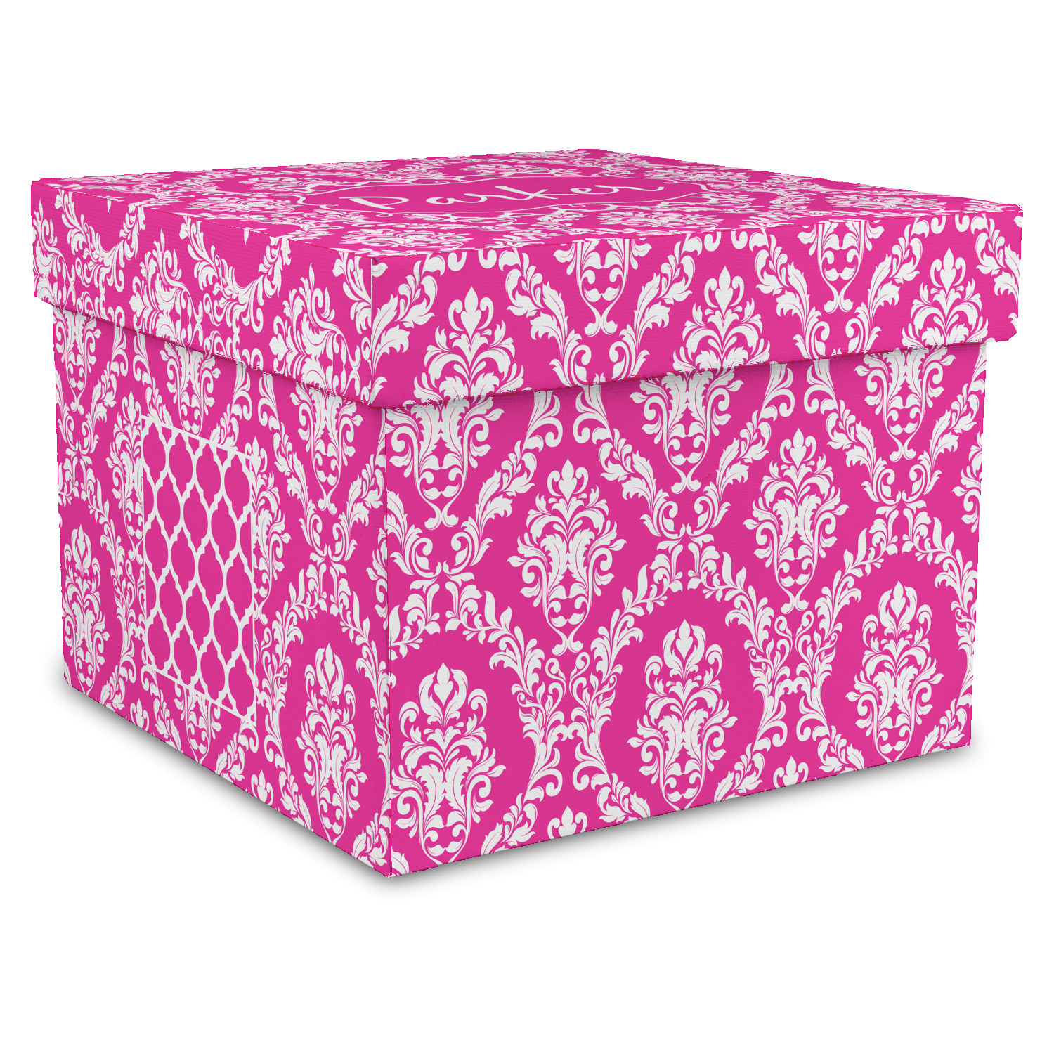 This is one of our new concentric design style - where you can use any two patterns together - we have chose to feature our damask and moroccan / trellis patterns. We chose our hot pink and white for our colors and curlz label with a name for personalization.
