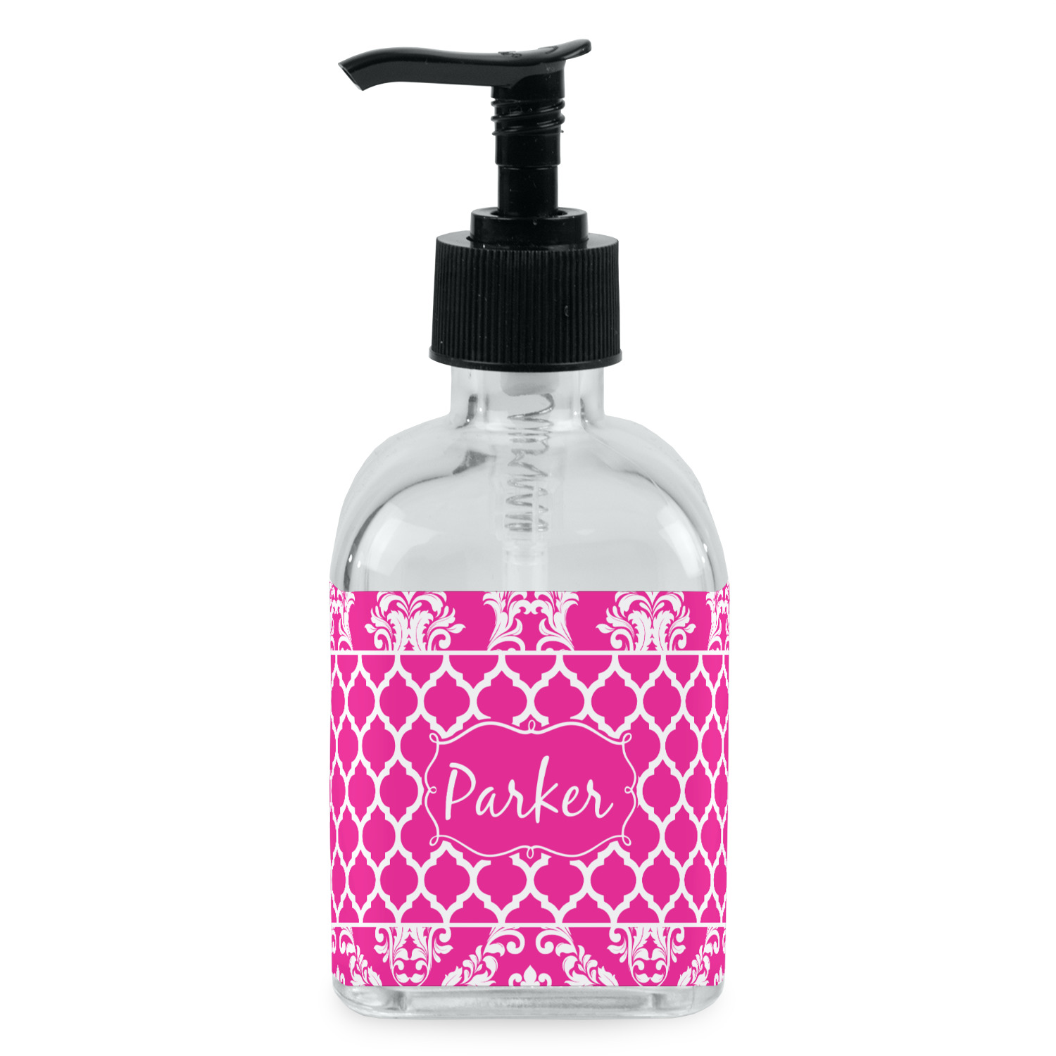 Crafted from a high-quality glass, these soap dispensers and lotion dispensers are durable and robust, while still looking elegant. They are sold with black pumps. Each soap dispenser pump measures at 6.5 by 2.25 inches. On these soap pumps, we display your customized design on a personalized vinyl adhesive on three sides. That way, you can judge how much liquid is in the bottles from the back.