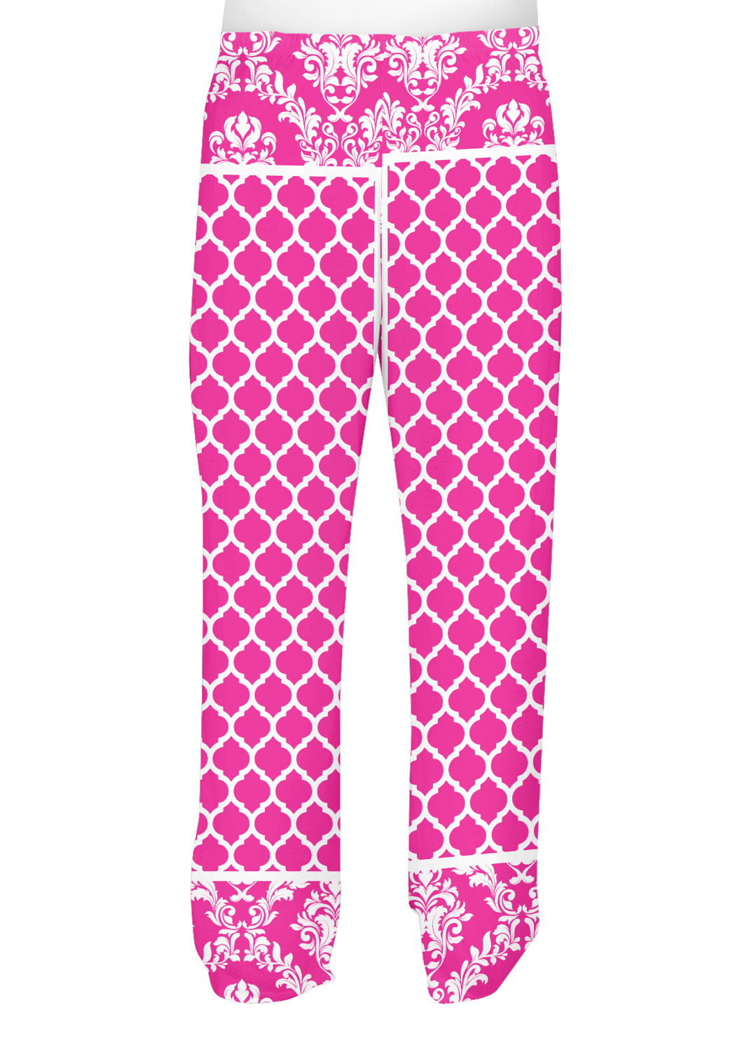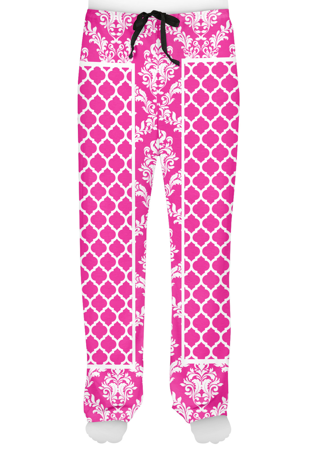 This is one of our new concentric design style - where you can use any two patterns together - we have chose to feature our damask and moroccan / trellis patterns. We chose our hot pink and white for our colors and curlz label with a name for personalization.