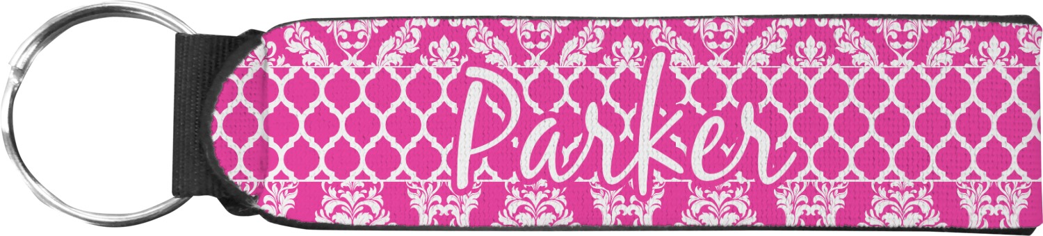 Made from neoprene, these key fob wristlets are comfortable, cushioned, easy to slip on and off; these traits allow it to maintain a slim, yet fashionable appearance, all while optimizing your efficiency. When attaching or removing keys, simply squeeze open the included metal ring. These fobs measure at around 4 inches, and have a bit of a stretch. Thus, they are best suited for small to medium size wrists. If you require a larger size, check out our webbing keychain fob for larger sizing.