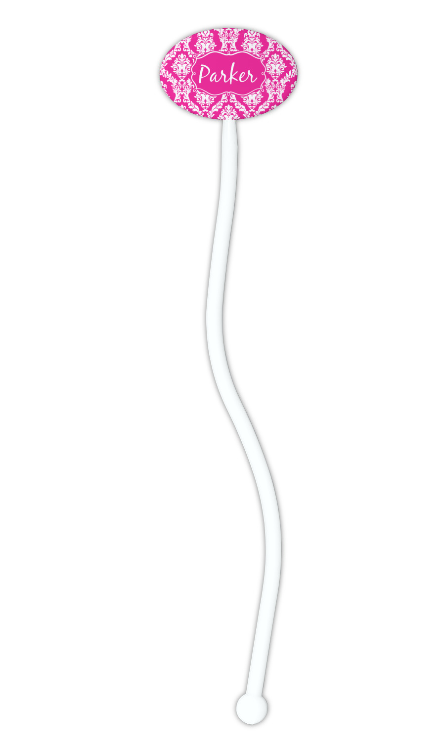 This is one of our new concentric design style - where you can use any two patterns together - we have chose to feature our damask and moroccan / trellis patterns. We chose our hot pink and white for our colors and curlz label with a name for personalization.