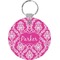 Our personalized keychains attach to the included metal, split key ring with a plastic, removable snap. Since a metal ring is included with your purchase, you have the liberty to keep your keys together on the ring, with or without your unique keychain. We offer this keychain in three different shapes: circle, heart, or diamond. We print your personalized design(s) on both sides of the key chain, and the surface has a glossy, reflective finish that only emphasizes your design. Each keychain is approximately 2.25 by 2.25 inches.