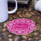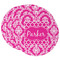 This is one of our new concentric design style - where you can use any two patterns together - we have chose to feature our damask and moroccan / trellis patterns. We chose our hot pink and white for our colors and curlz label with a name for personalization.