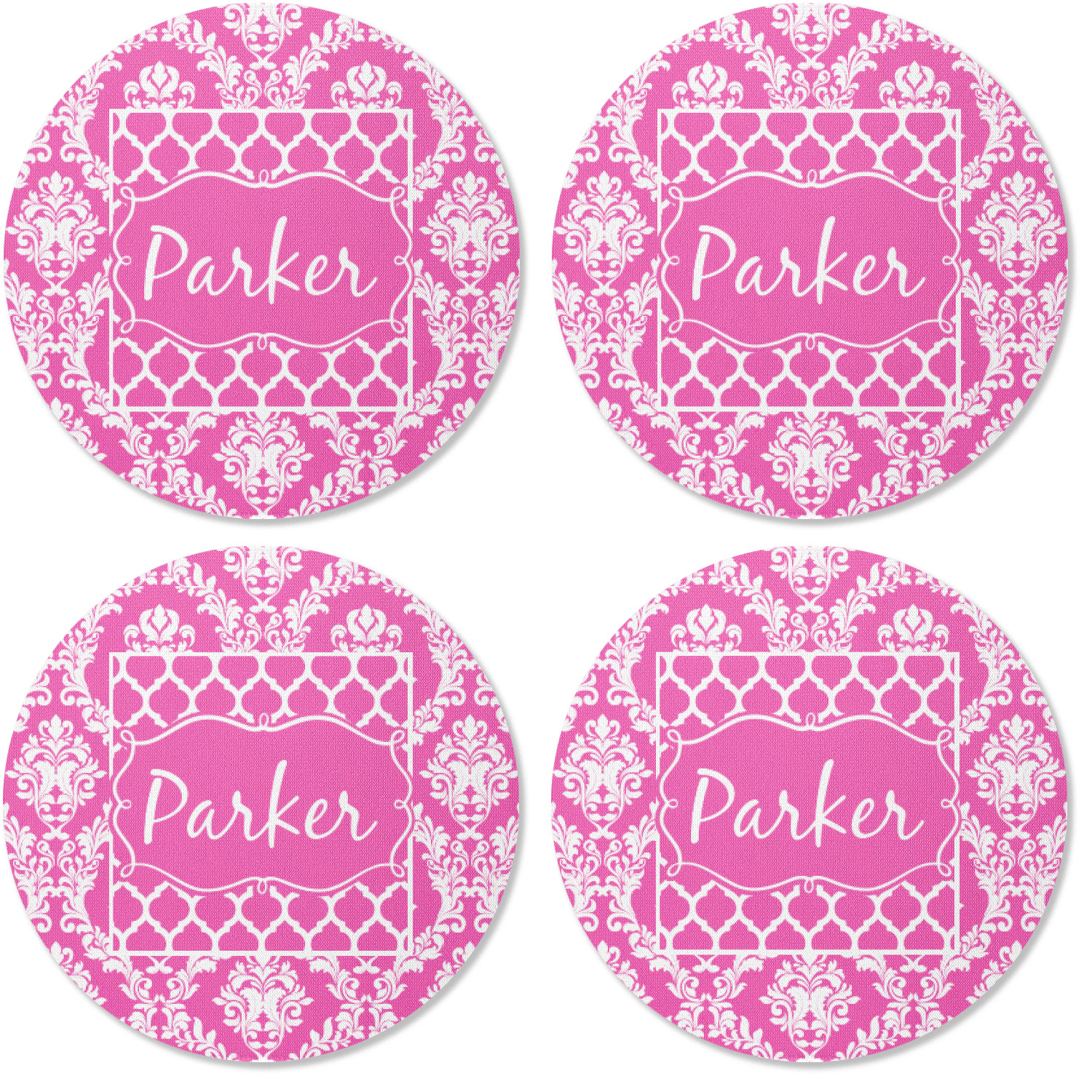 These drink coasters have a smooth, polyester top and a textured, rubber backing on its bottom. The non-slip rubber backing underneath works to keep any spills at bay. At 4 by 4 by 0.25 inches thick, these custom coasters are a suitable size for most drinkware. Your personalization is displayed atop the face of the cup coaster. We sell these rubber coasters in two different shapes: square and round. You can buy each shape as singulars or as a set of 4.