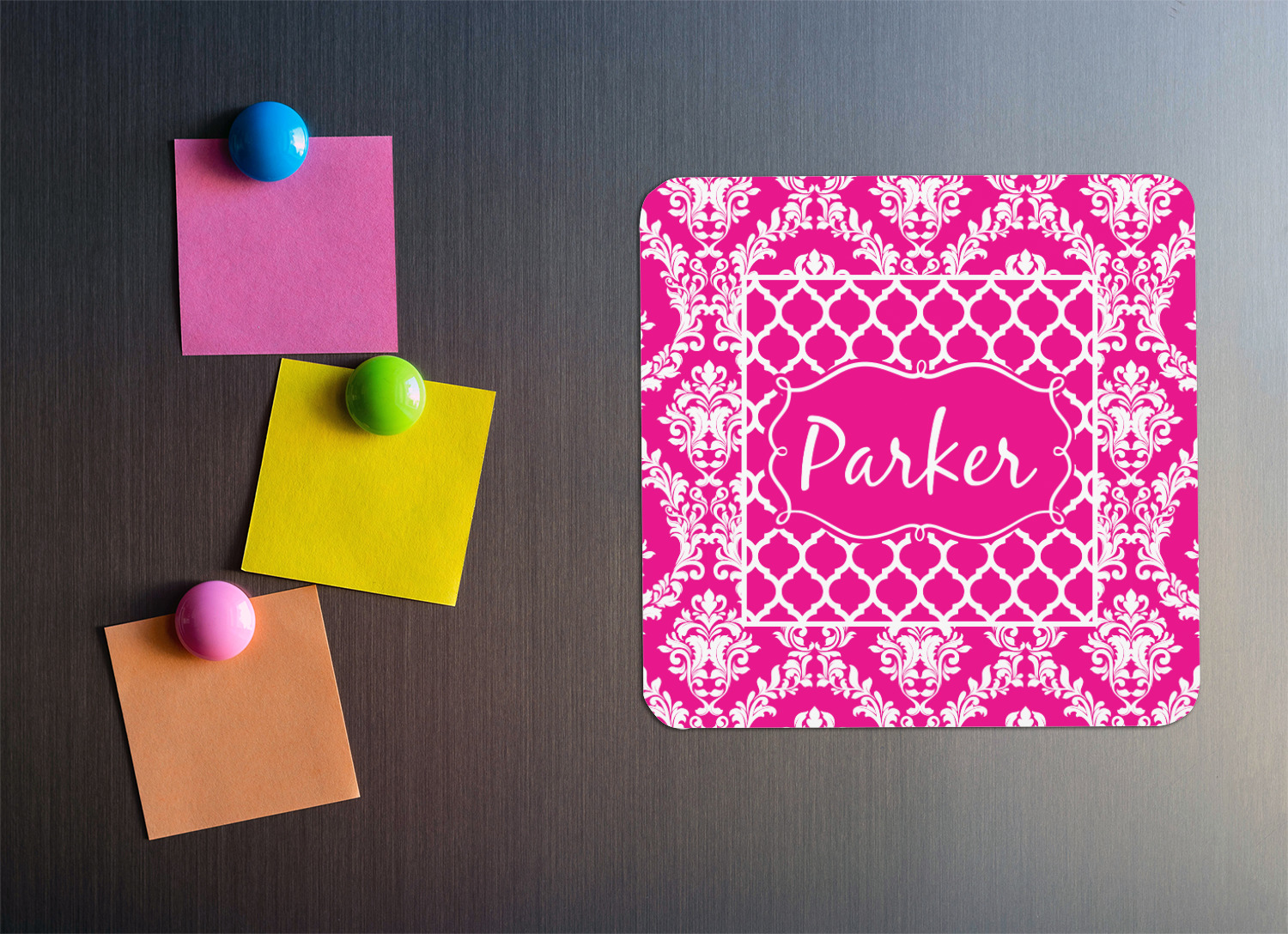 Our personalized square magnets will be your new favorites to keep your important papers or your child's A+ test on the fridge. These magnets will be great bag stuffers and with that extra touch of personalization you're sure to make the recipient smile!!