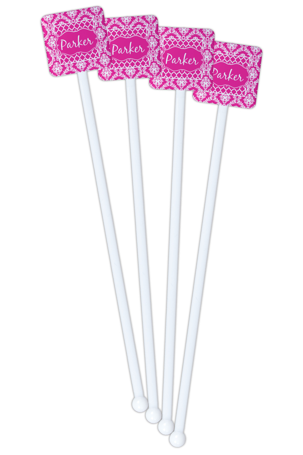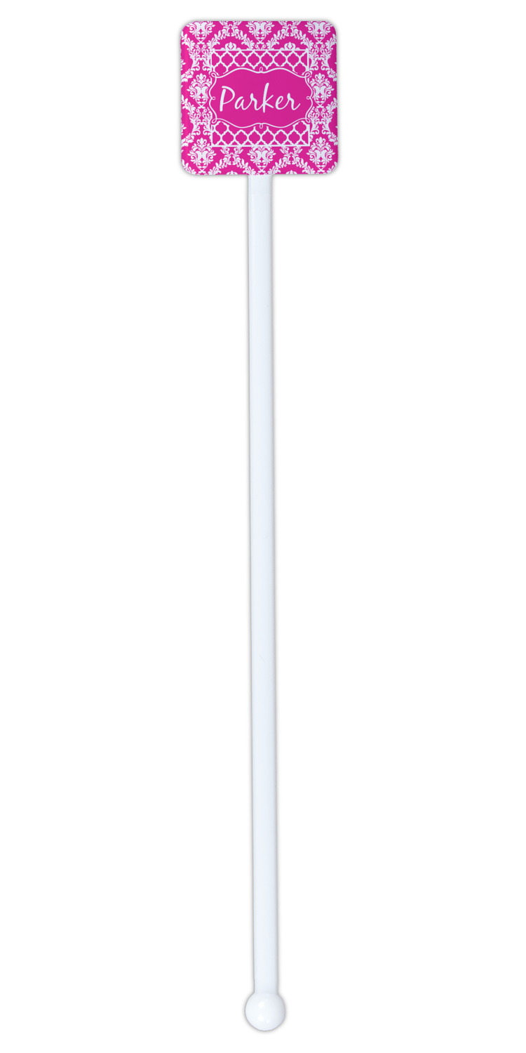 This is one of our new concentric design style - where you can use any two patterns together - we have chose to feature our damask and moroccan / trellis patterns. We chose our hot pink and white for our colors and curlz label with a name for personalization.