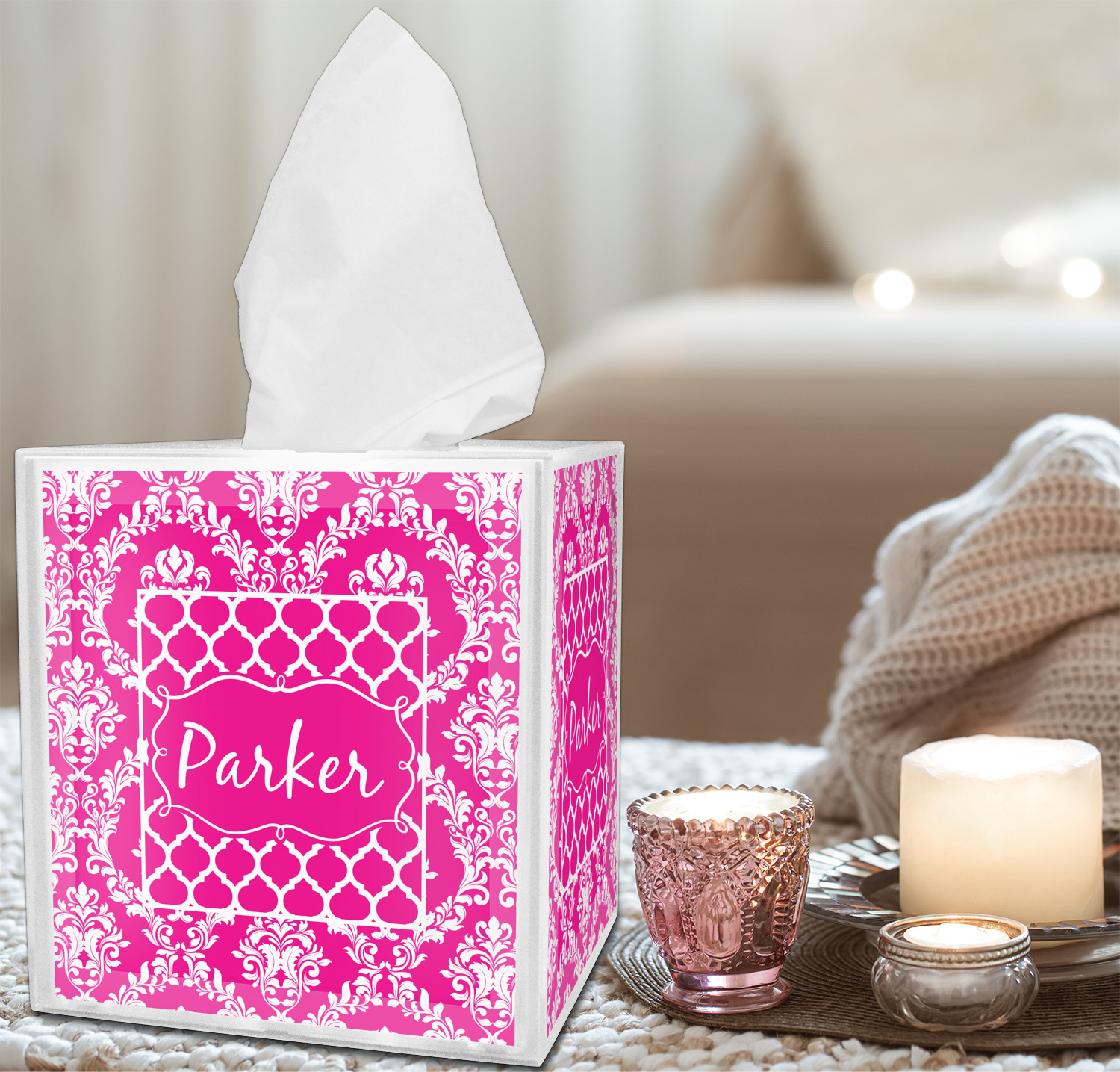 Looking to pair your brand new tissue box cover with additional accessories? We invite you to shop by room by choosing from our Bathroom, Bedroom, Home Decor categories, and more! If this tissue box is for a bathroom, consider pairing it with toothbrush holders or wastebaskets! If this is for a bedroom, try customizing a matching lampshade for it! The options for personalization are limitless.