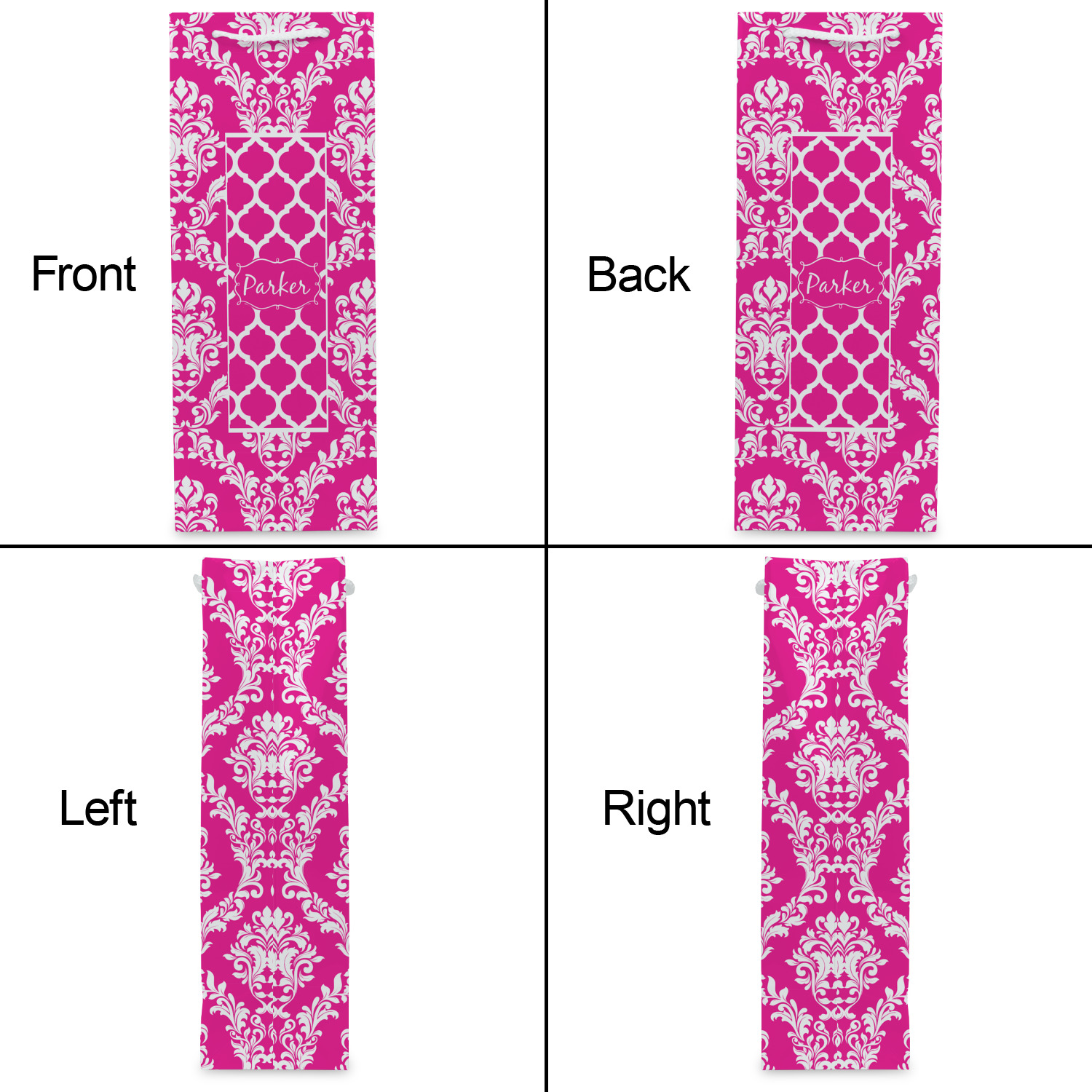 Our wine bags are printed on premium paper. The bags are then cut, scored and folded. The handles and cardstock base it attached. These custom wine bags are printed and made in the USA.