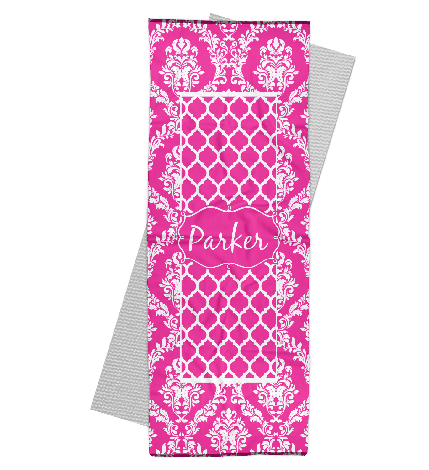 This gorgeous yoga mat towel is printed with your own design on the front with a grey colored back. They are the perfect thing to take with you to a yoga class where you use community mats. No need to worry about someone else's sweat left behind! They also give you a little extra grip on your mat, especially for when you do a hot yoga workout! They measure at approximately 24" W x 68" H. They are the perfect thing for your regular yoga classes or workouts.