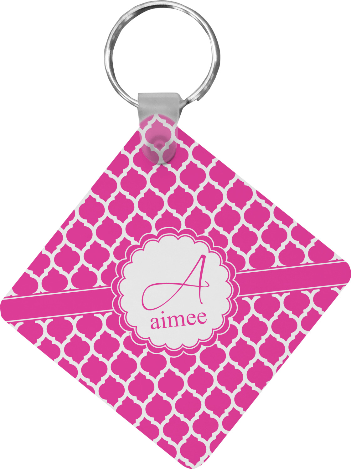 Our personalized keychains attach to the included metal, split key ring with a plastic, removable snap. Since a metal ring is included with your purchase, you have the liberty to keep your keys together on the ring, with or without your unique keychain. We offer this keychain in three different shapes: circle, heart, or diamond. We print your personalized design(s) on both sides of the key chain, and the surface has a glossy, reflective finish that only emphasizes your design. Each keychain is approximately 2.25 by 2.25 inches.