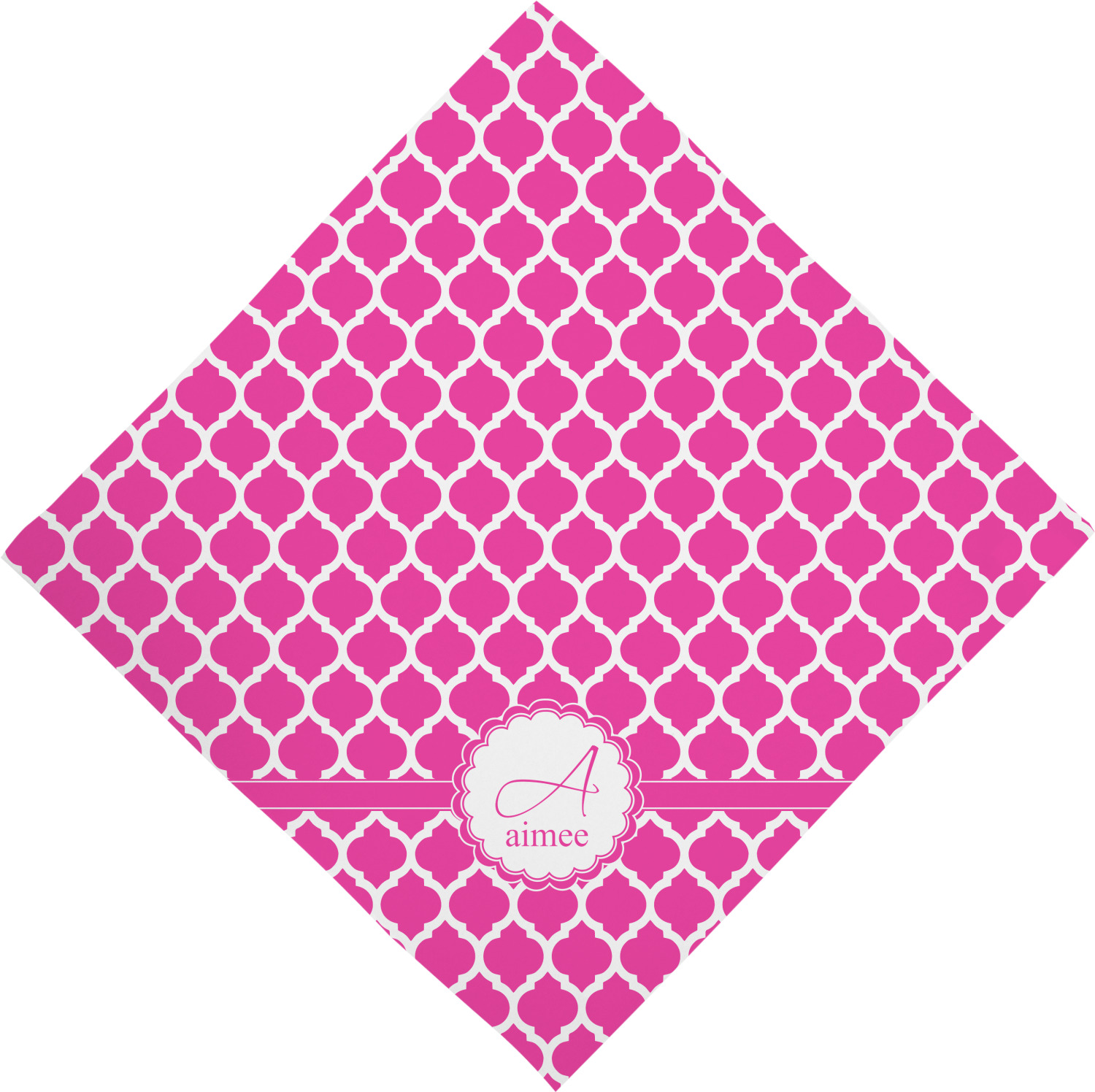 This beautiful pet bandana really is the perfect accessory. It is made from a silky feeling polyester and measures at approximately 23" x 23". Your personalization will be printed on a diagonal, so that you are able to read the personalization when folded into a triangle. This bandana fits best on large dogs, but can be folded smaller if there is no personalized text to fit smaller pets.