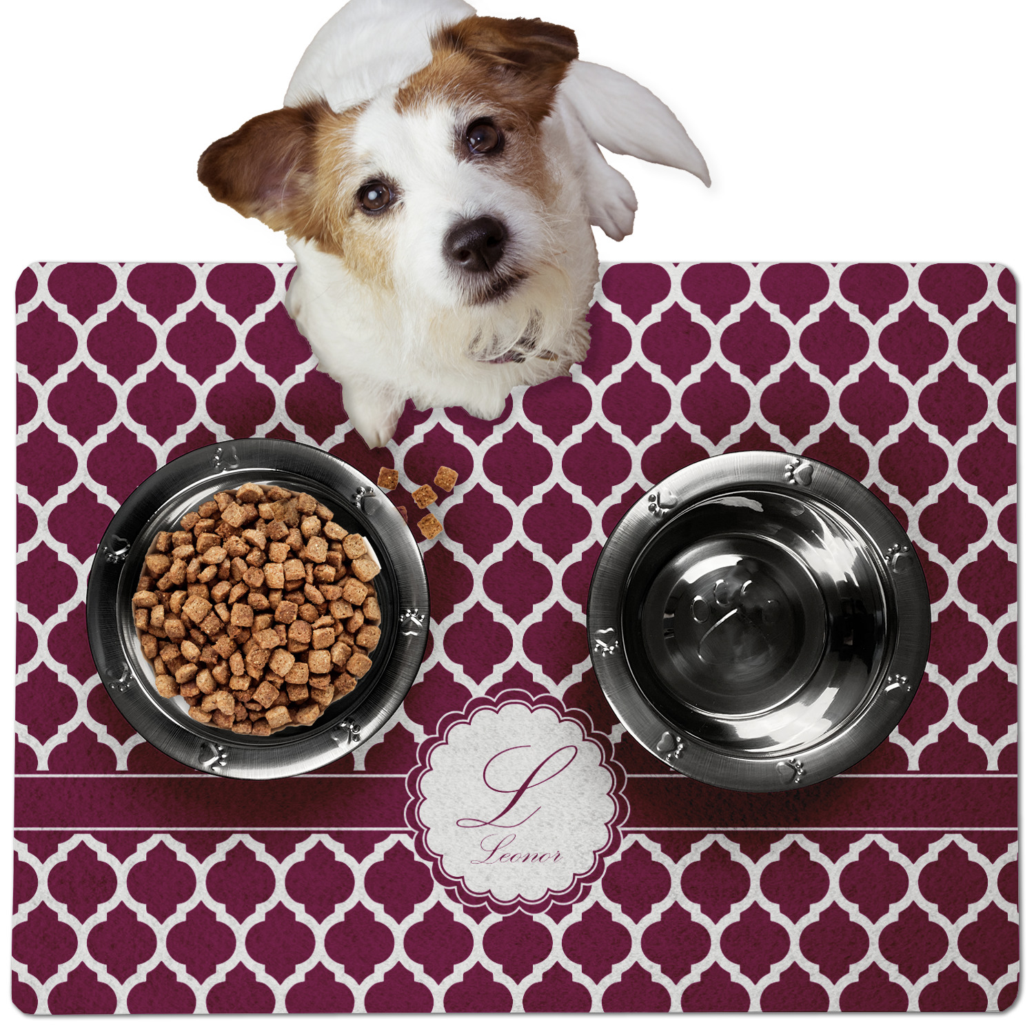 This dog bowl mat, fabricated from polyester, proudly displays your customized design on its top, while its bottom includes a non-slip rubber. This feature allows it to remain firmly in place, even when your dog spills his/her water. With 3 sizes available (18" x 12", 24" x 18", 30" x 24"), the pet food mat has ample space for both a food and water bowl for any sized dogs. Though specified for dogs' use, these mats are also a splendid option for cats.