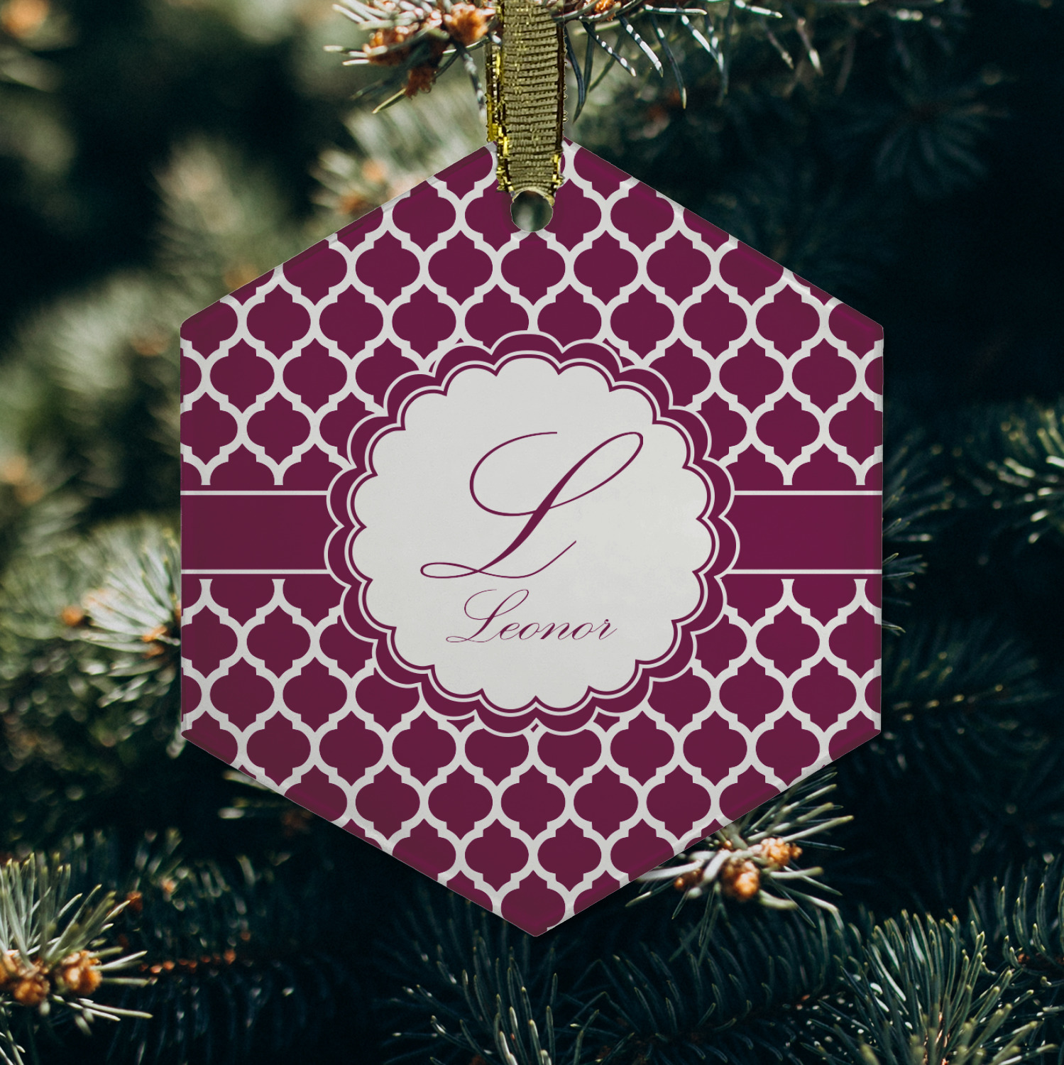 Each of our flat glass ornaments come with a gold string to hang on your Christmas tree with style! We offer two different shapes - flat, round ball or a hexagon. Both glass ornaments have a frosted coating on one side where we print your design while the other side is a clear gloss to give your personalized ornament a sheen finish. Our flat round glass ornament is approximately 3.5" x 3.5" while the flat hexagon ornaments are approximately 3.5" x 3".