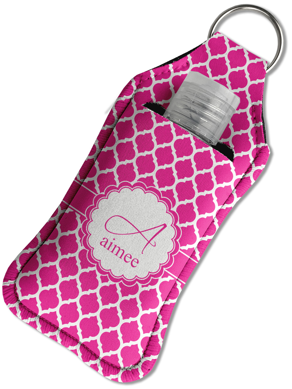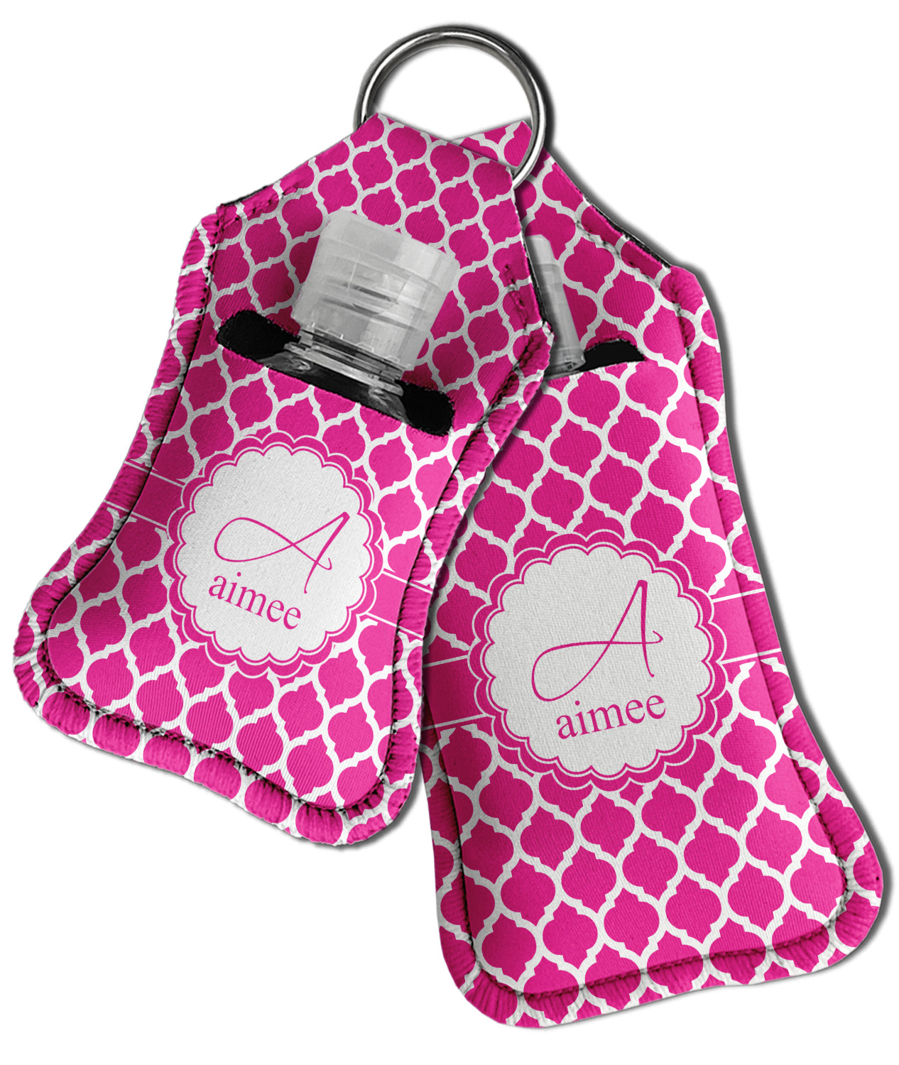 Each hand sanitizer holder comes with its own empty travel-sized, refillable hand sanitizer sure to fit snug in your customized sanitizer case! Our hand sanitizer cases are a durable, yet soft neoprene material sure to last any daily activities or travel agenda. Customize and personalize a hand sanitizer bottle holder with one of our two sizes - small (4.25" x 2.25") or large (5.5" x 2.5"). Each travel sanitizer holder comes with a keyring for attachment on bags, keys, or more!