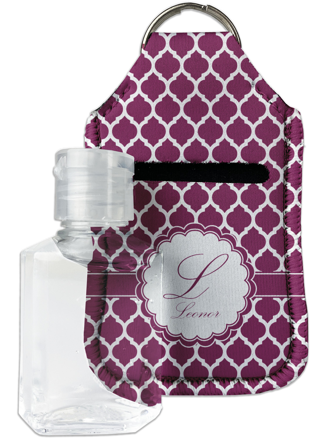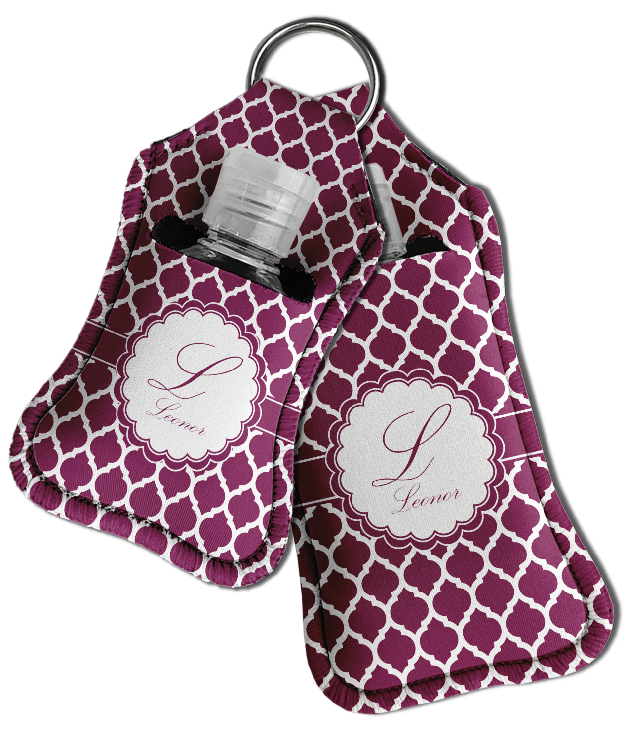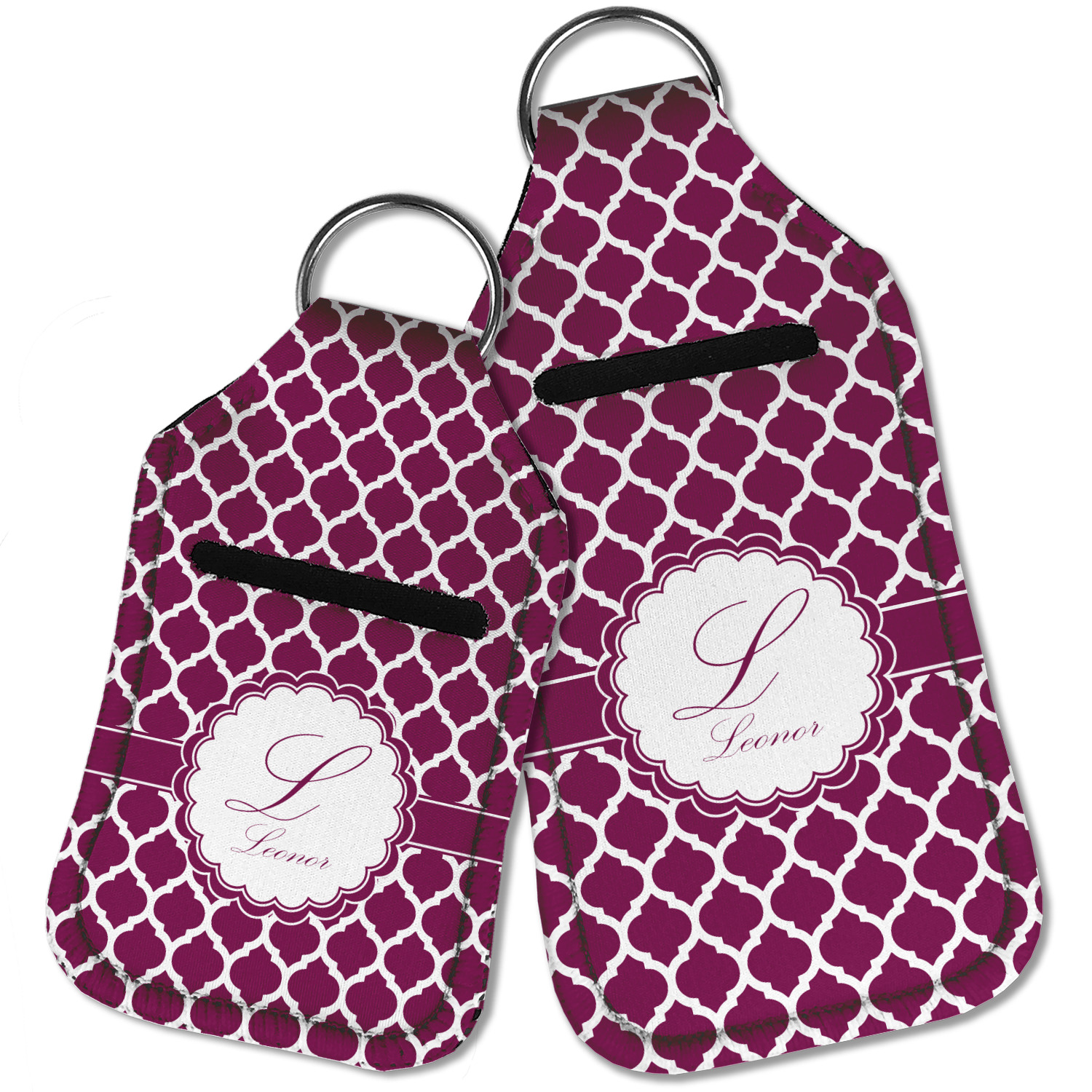 Each hand sanitizer holder comes with its own empty travel-sized, refillable hand sanitizer sure to fit snug in your customized sanitizer case! Our hand sanitizer cases are a durable, yet soft neoprene material sure to last any daily activities or travel agenda. Customize and personalize a hand sanitizer bottle holder with one of our two sizes - small (4.25" x 2.25") or large (5.5" x 2.5"). Each travel sanitizer holder comes with a keyring for attachment on bags, keys, or more!