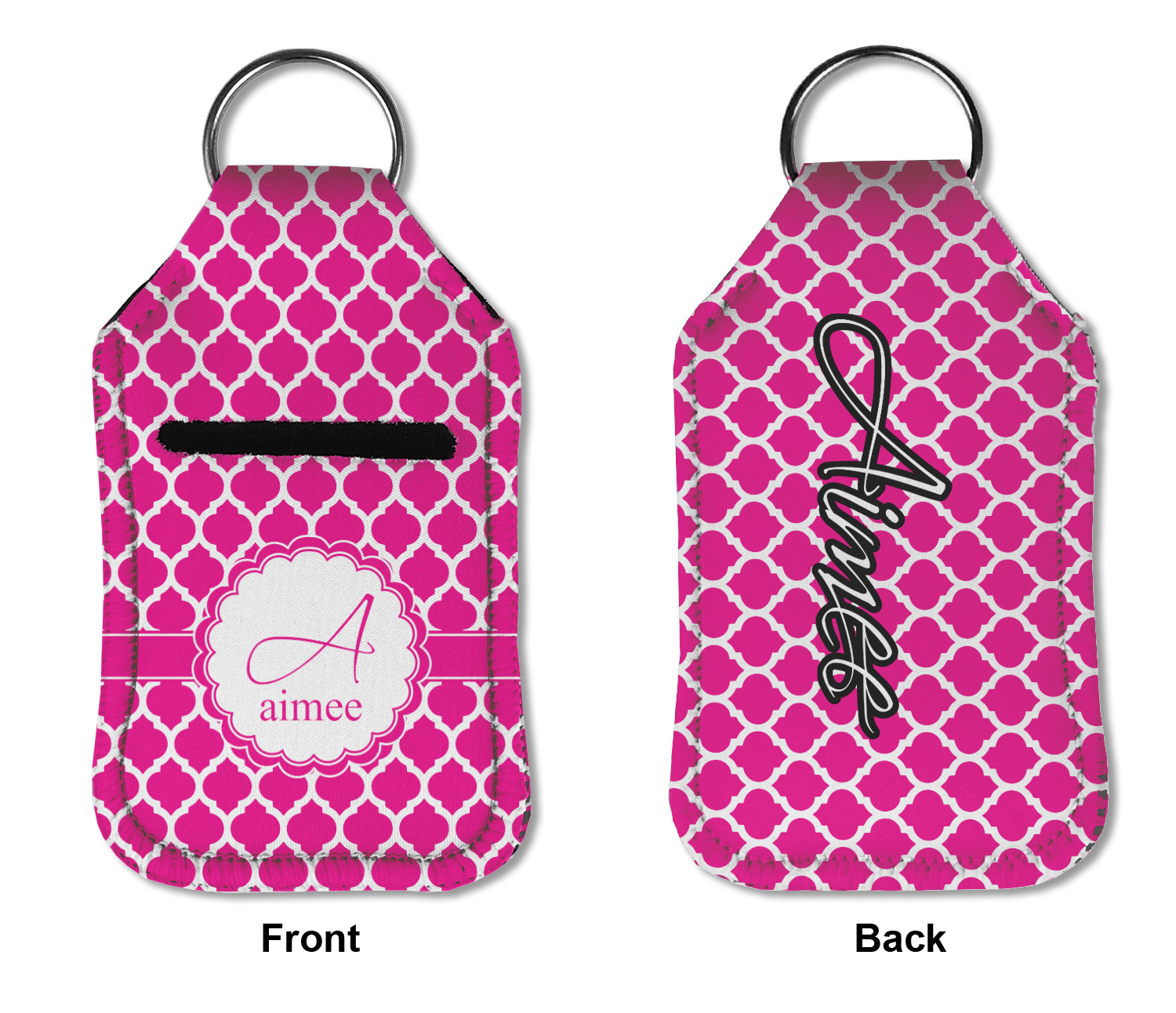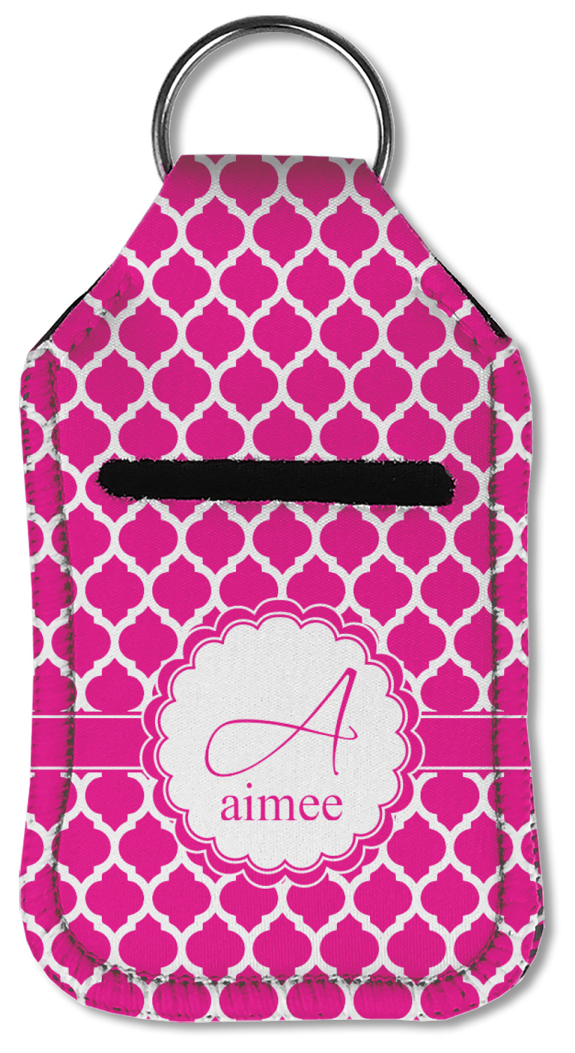 Each hand sanitizer holder comes with its own empty travel-sized, refillable hand sanitizer sure to fit snug in your customized sanitizer case! Our hand sanitizer cases are a durable, yet soft neoprene material sure to last any daily activities or travel agenda. Customize and personalize a hand sanitizer bottle holder with one of our two sizes - small (4.25" x 2.25") or large (5.5" x 2.5"). Each travel sanitizer holder comes with a keyring for attachment on bags, keys, or more!