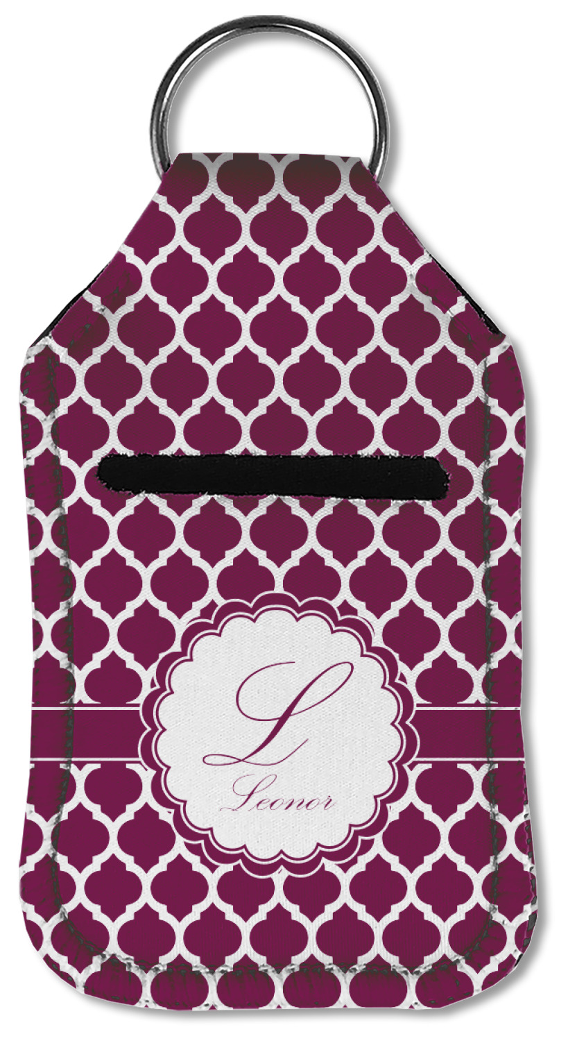 Each hand sanitizer holder comes with its own empty travel-sized, refillable hand sanitizer sure to fit snug in your customized sanitizer case! Our hand sanitizer cases are a durable, yet soft neoprene material sure to last any daily activities or travel agenda. Customize and personalize a hand sanitizer bottle holder with one of our two sizes - small (4.25" x 2.25") or large (5.5" x 2.5"). Each travel sanitizer holder comes with a keyring for attachment on bags, keys, or more!