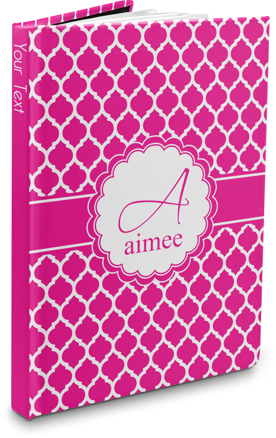 The hardcover of this personalized journal is covered with a smooth, matte, laminate coating. The unique laminate of the covers gives the hardcover notebook a smooth, sleek feel. Filled with 75, lined, white pages, this hardbound notebook has enough room for your reminders and notes. For your convenience, the pages have been perforated, which guarantees an easy tear and removal. Your customization is printed across the entire cover of the book, while the interior is black in color.