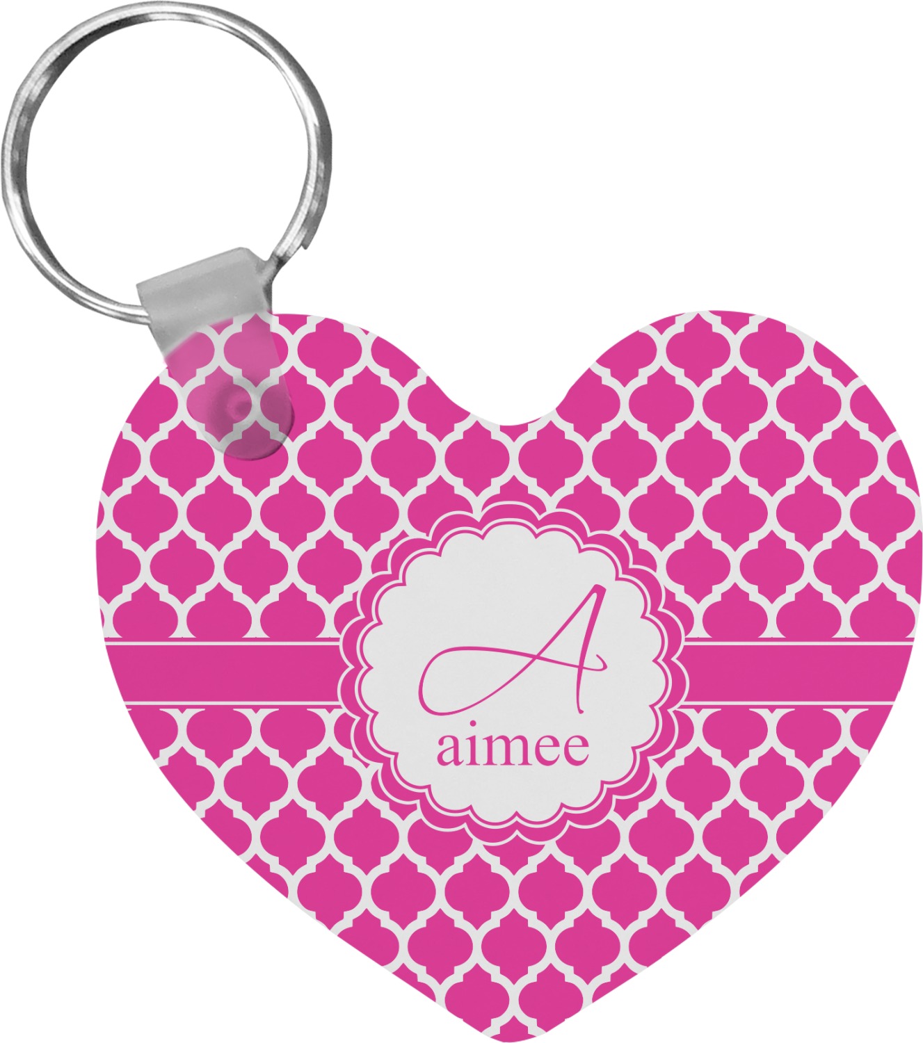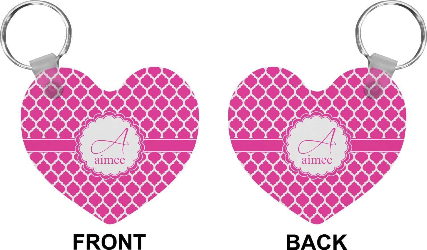 Our personalized keychains attach to the included metal, split key ring with a plastic, removable snap. Since a metal ring is included with your purchase, you have the liberty to keep your keys together on the ring, with or without your unique keychain. We offer this keychain in three different shapes: circle, heart, or diamond. We print your personalized design(s) on both sides of the key chain, and the surface has a glossy, reflective finish that only emphasizes your design. Each keychain is approximately 2.25 by 2.25 inches.