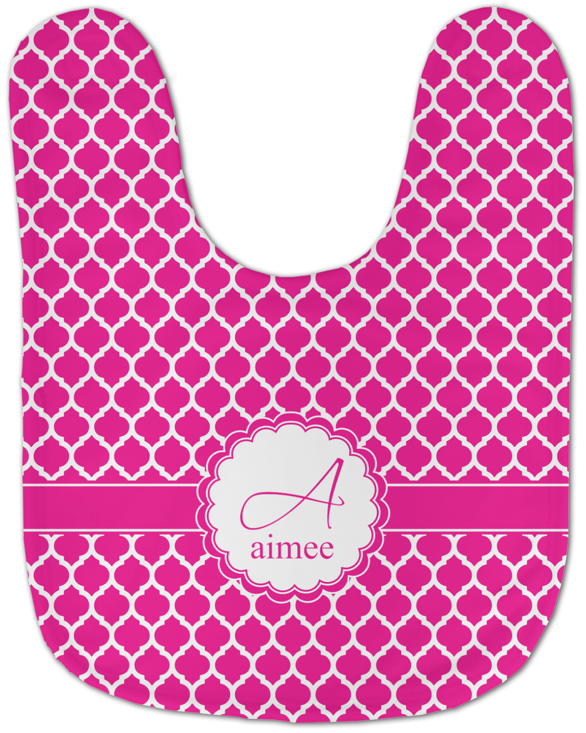 Made of soft polyester, each customizable bib hugs comfortably around the neck to catch every drip and drool. Each bib design is printed with baby-safe ink and finished with a secure stitch pattern and velcro clasp. We carry two customizable bib styles -Microfiber Velour and Jersey Knit.