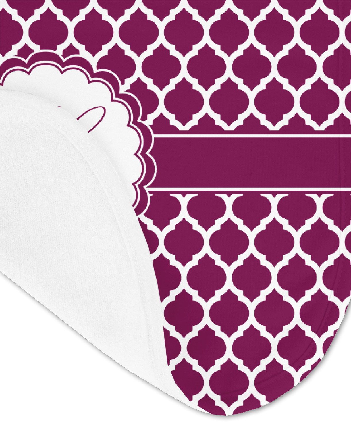 Made of soft polyester, each customizable bib hugs comfortably around the neck to catch every drip and drool. Each bib design is printed with baby-safe ink and finished with a secure stitch pattern and velcro clasp. We carry two customizable bib styles -Microfiber Velour and Jersey Knit.