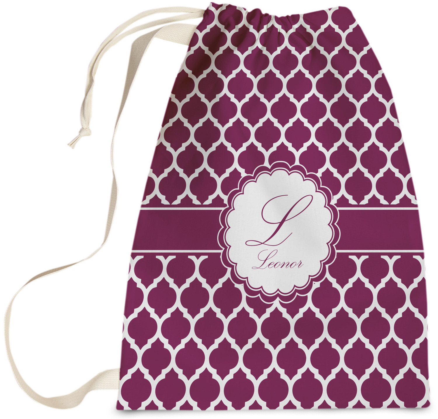 Carry your laundry in style with these customized laundry bags. Available in two sizes, featuring a natural colored woven strap and a cinch cord, these bags hold a lot of clothes or anything else you want to fit in them.