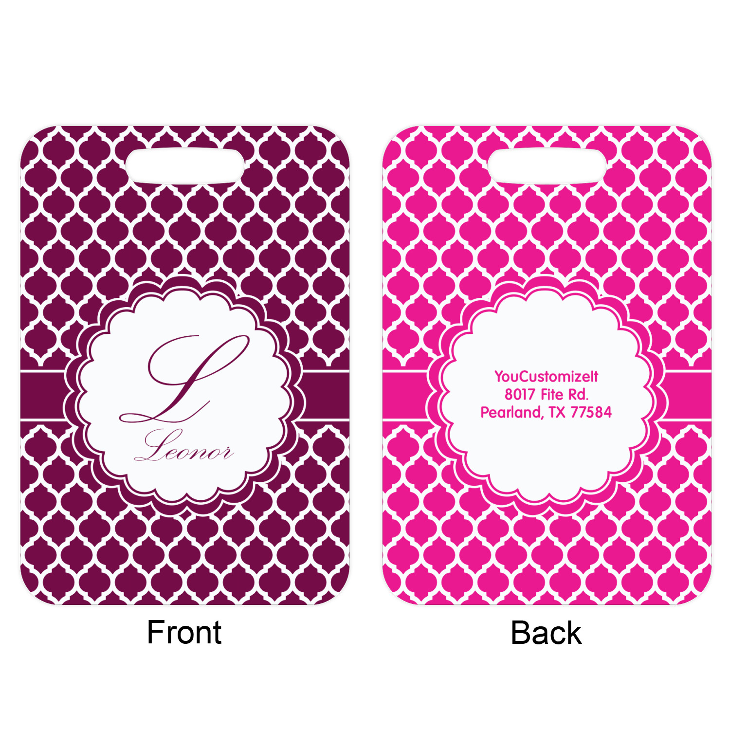 These metal luggage tags are printed on both sides; the front is printed with the design of your choice - and can be personalized with your name, name & initial or your monogram. The back can have as much or as little of your contact information as you desire - your name, your address, city, zip & state, you can also include your phone number and email address. Customize it exactly the way you want it!